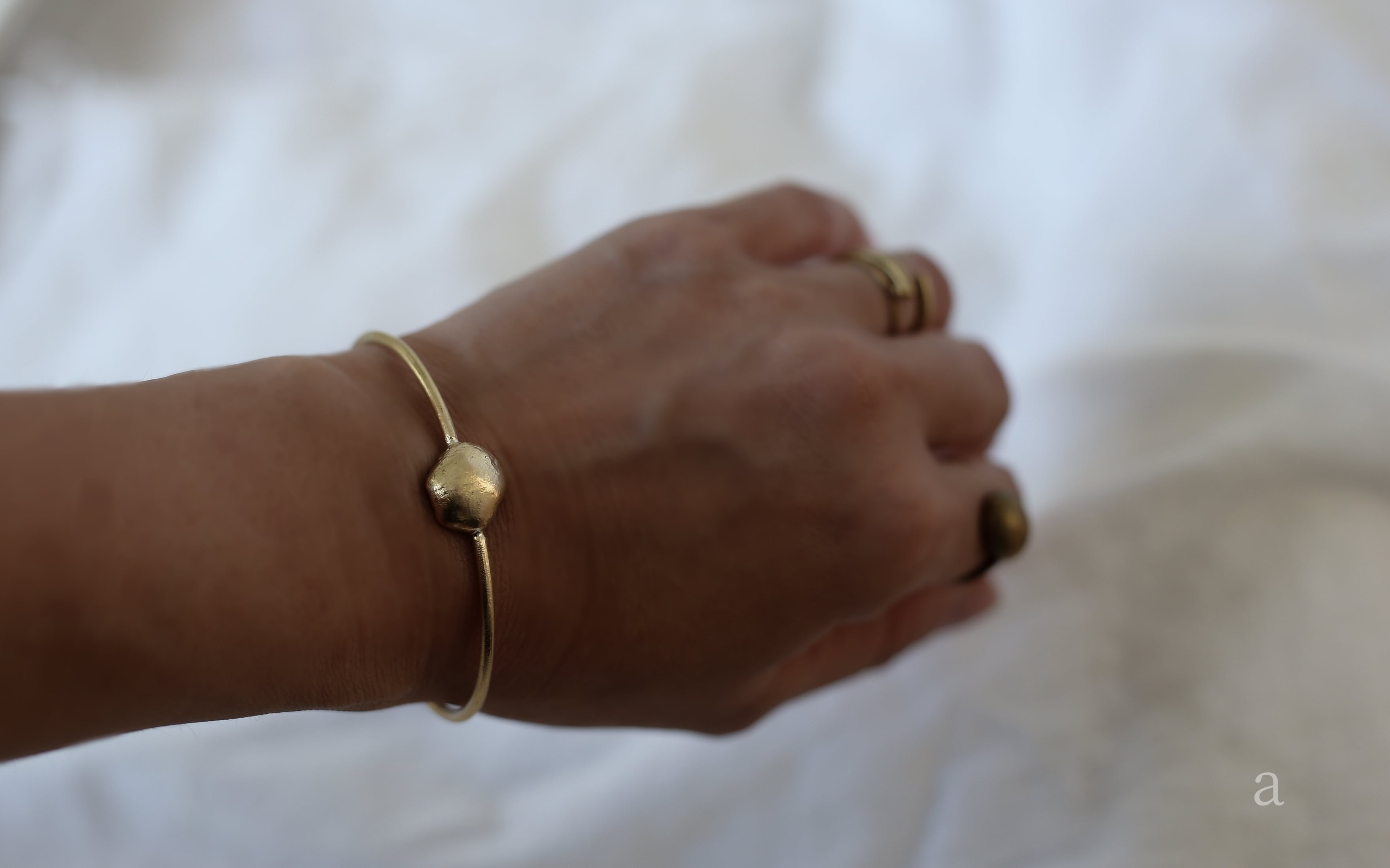 トップのモチーフは熱で真鍮を溶かし途中で偶然できた形です。