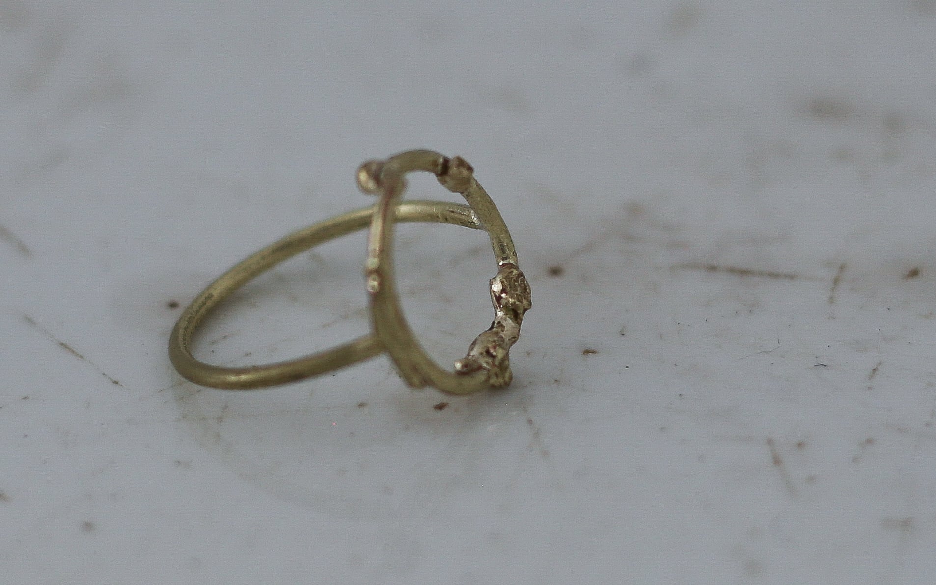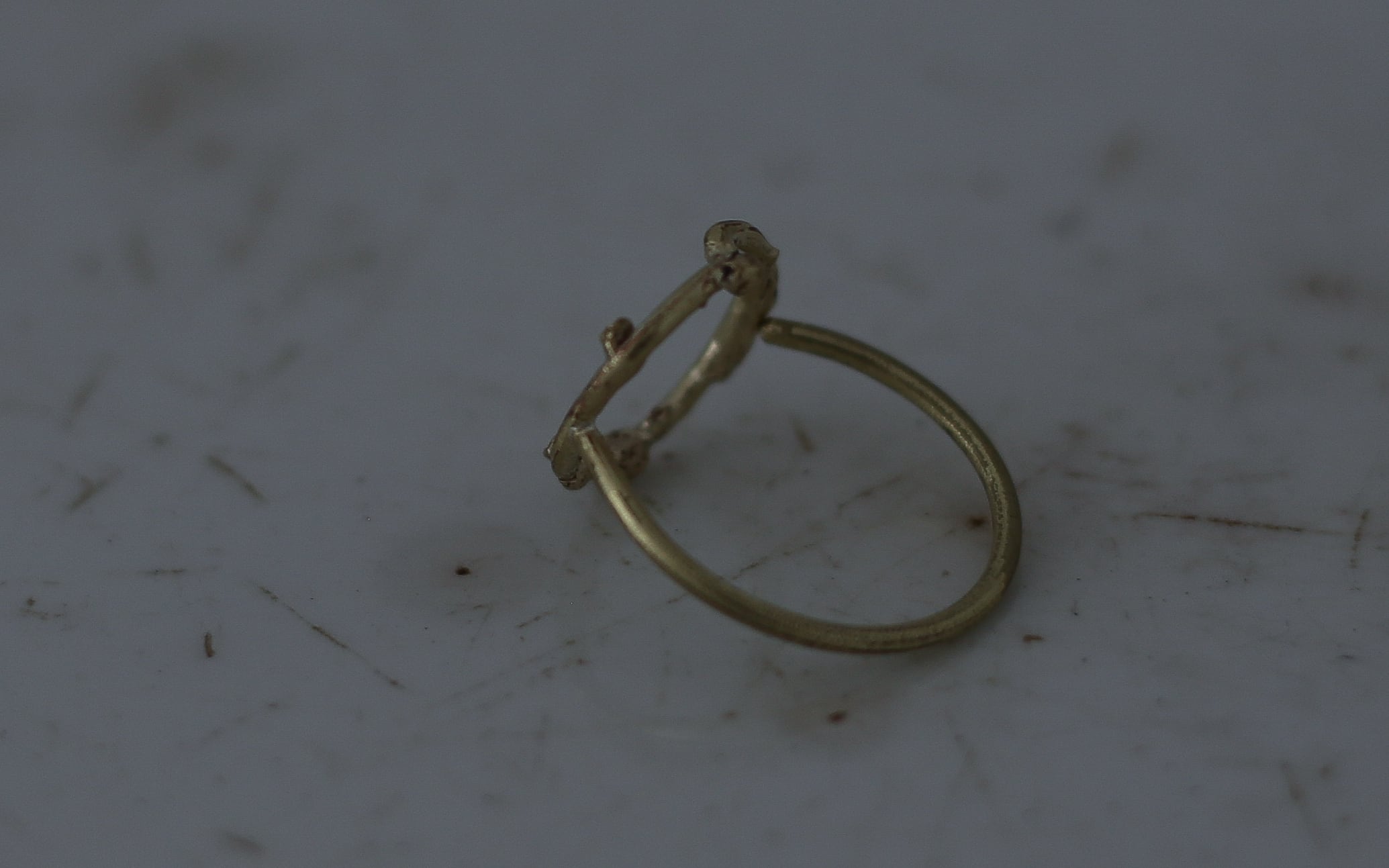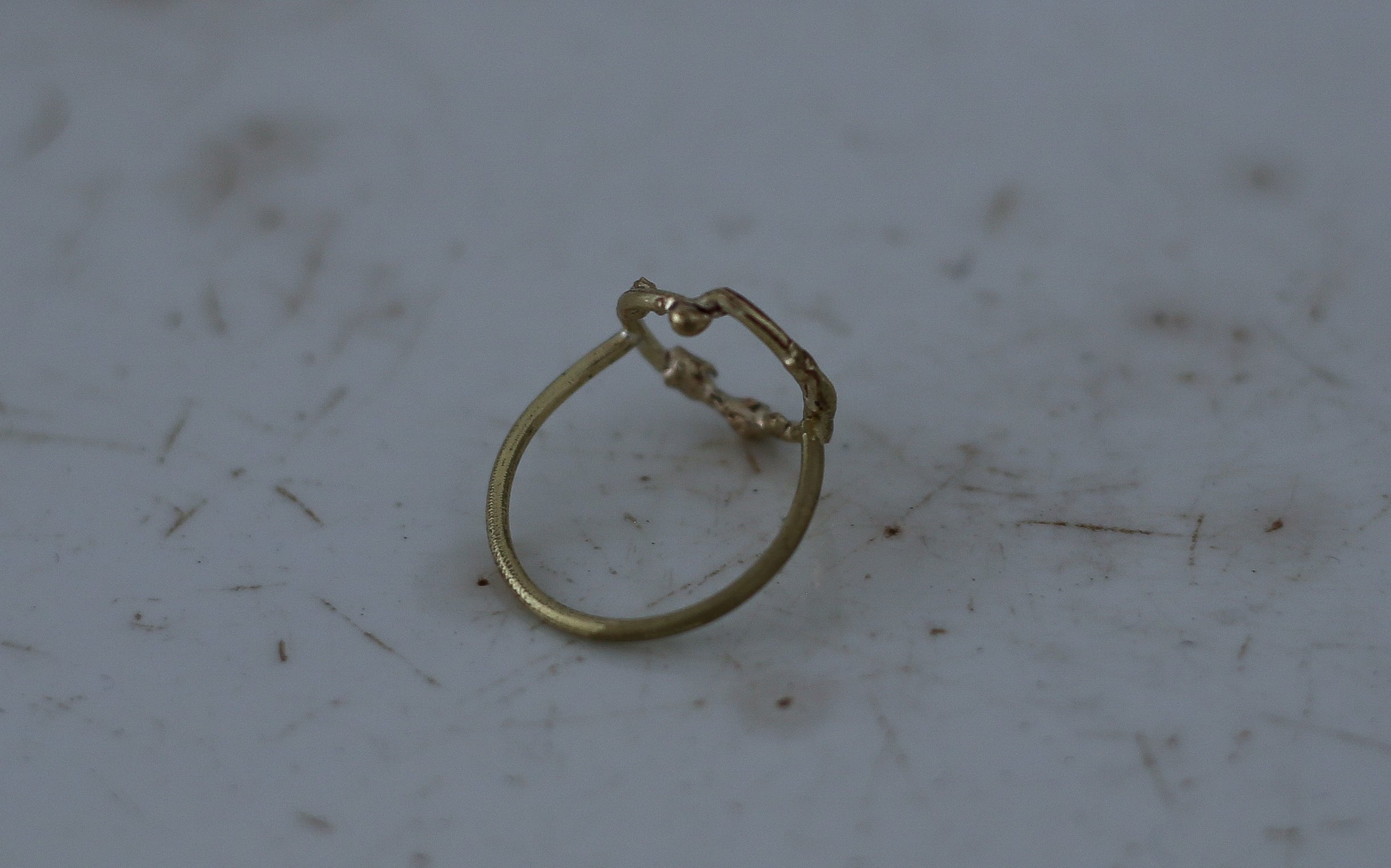 トップのモチーフは熱で真鍮を溶かし途中で偶然できた形です。