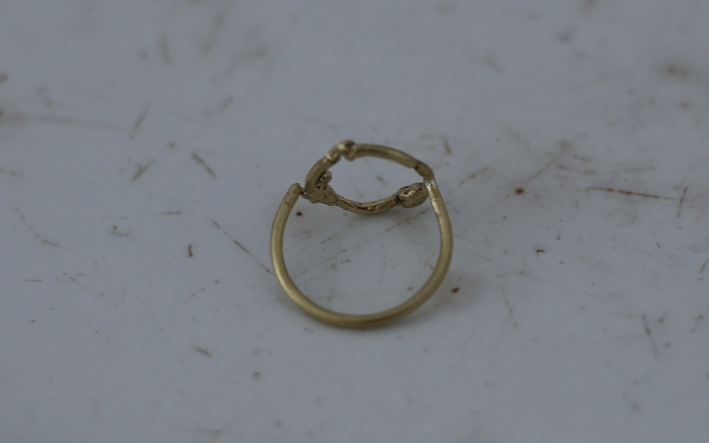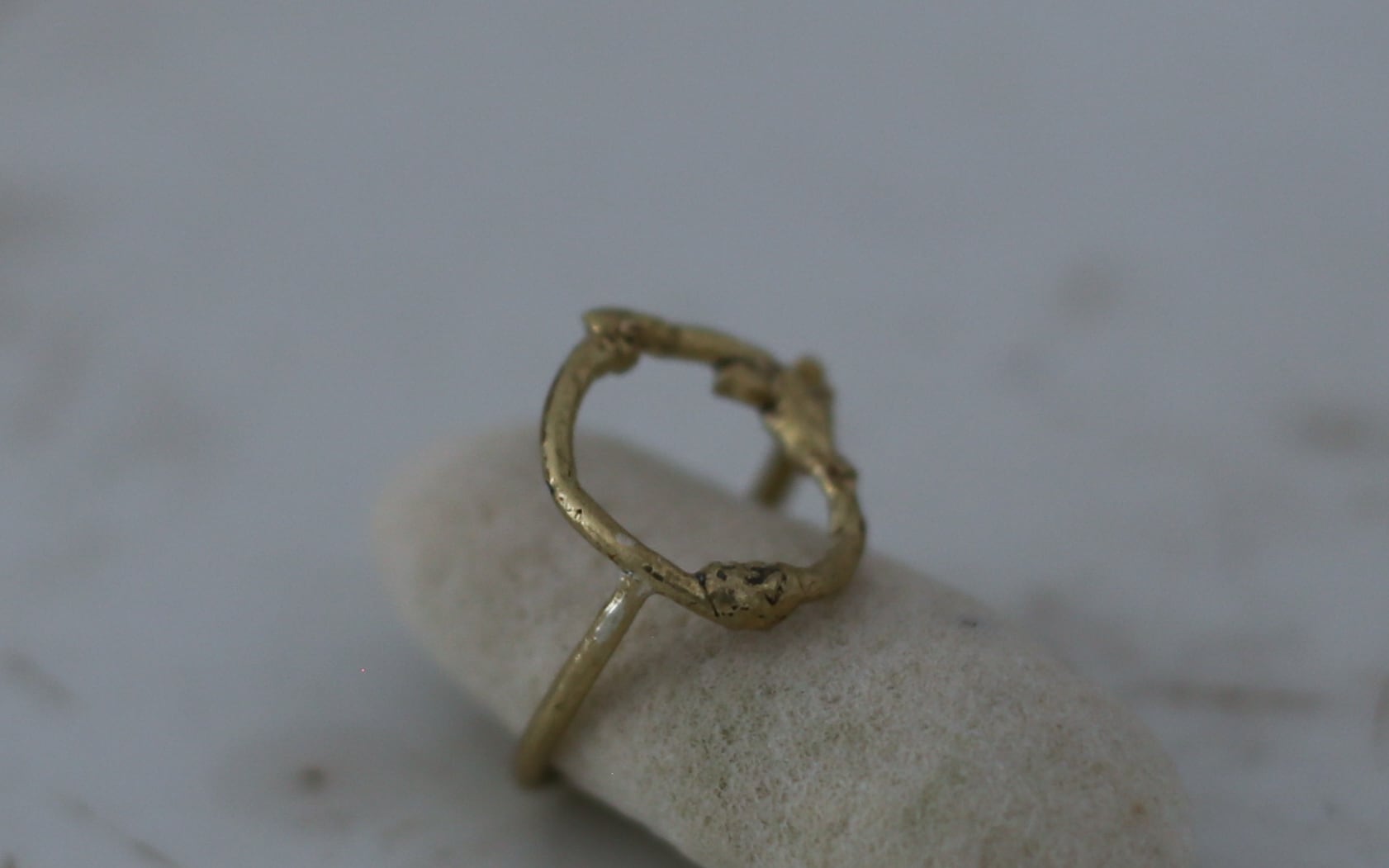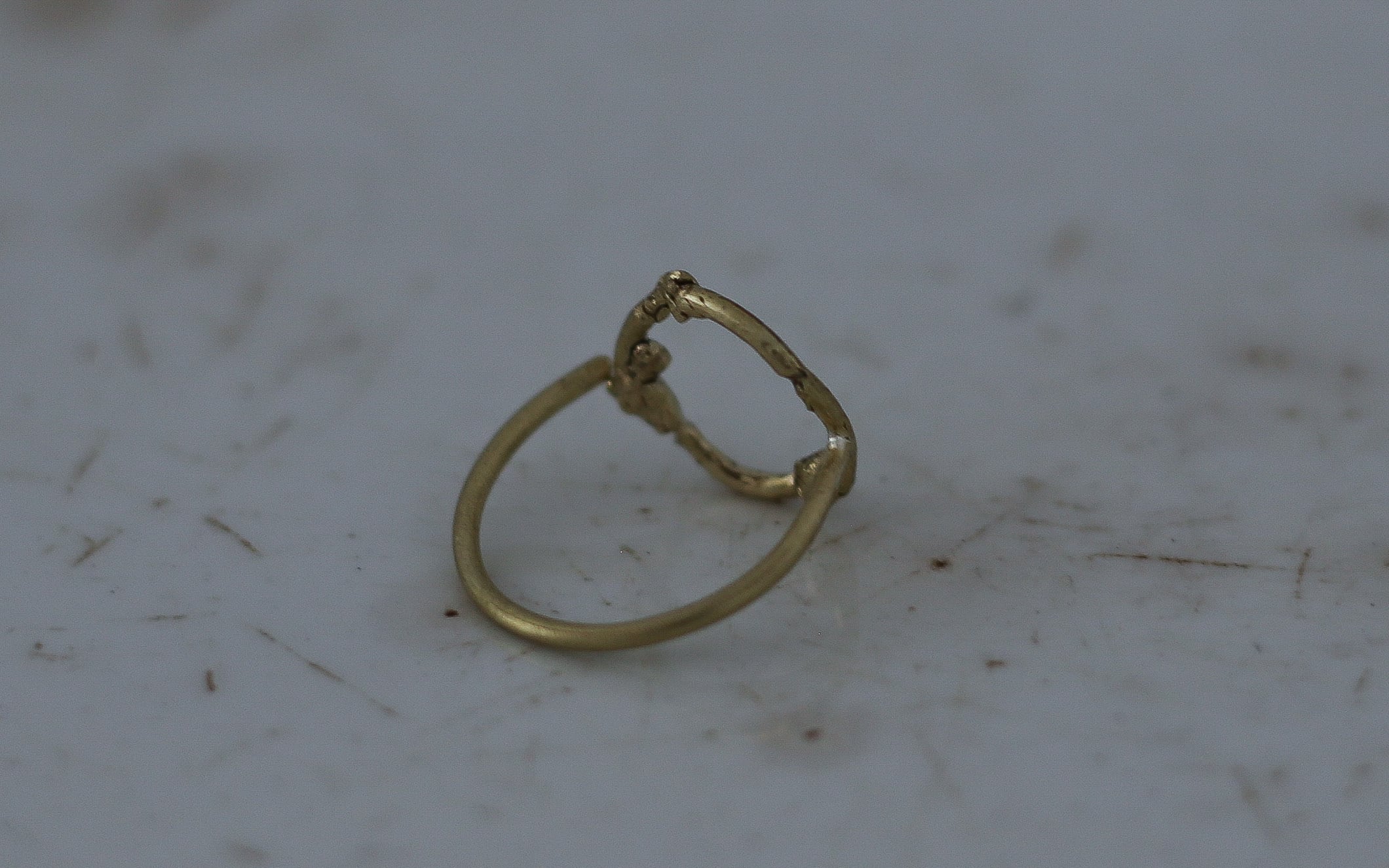 トップのモチーフは熱で真鍮を溶かし途中で偶然できた形です。