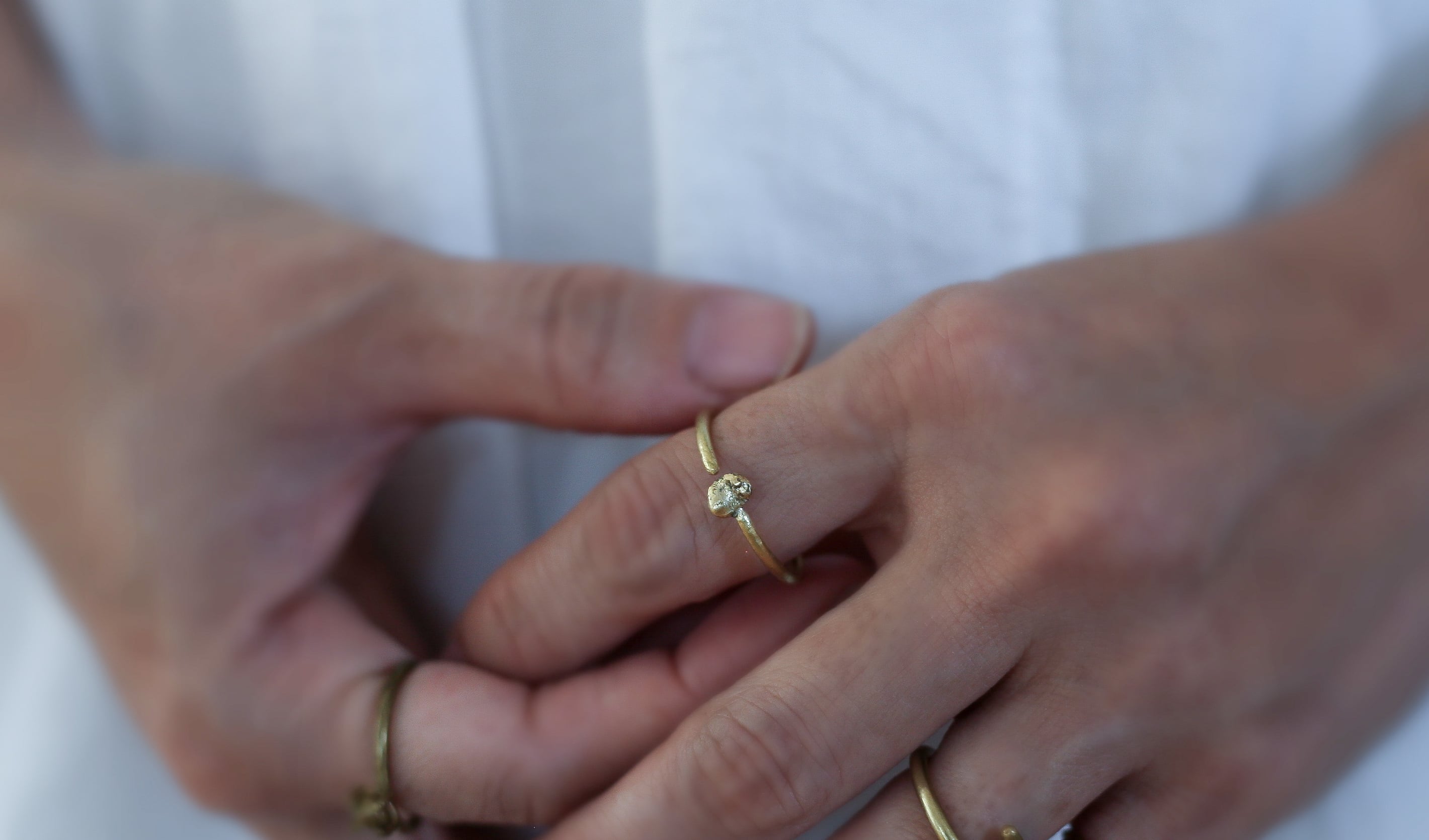 トップのモチーフは熱で真鍮を溶かし途中で偶然できた形です。