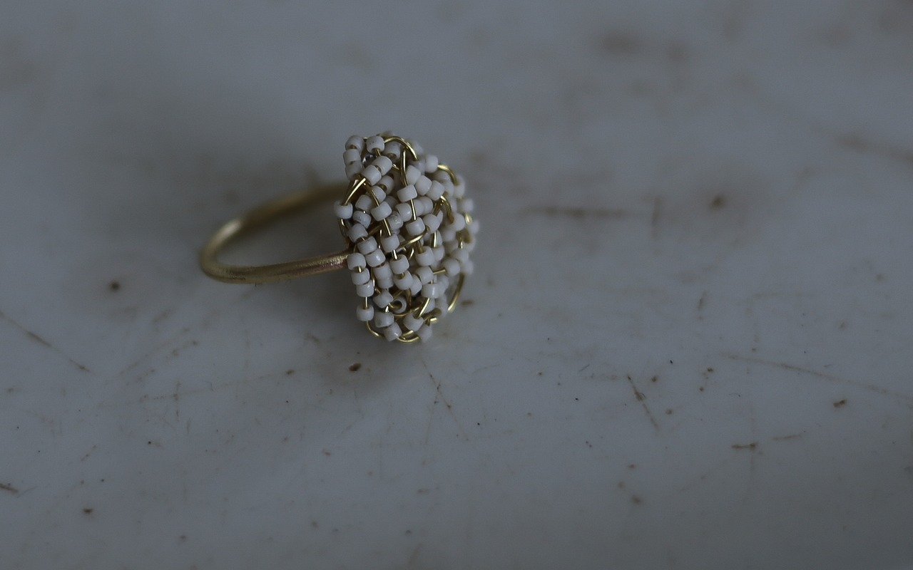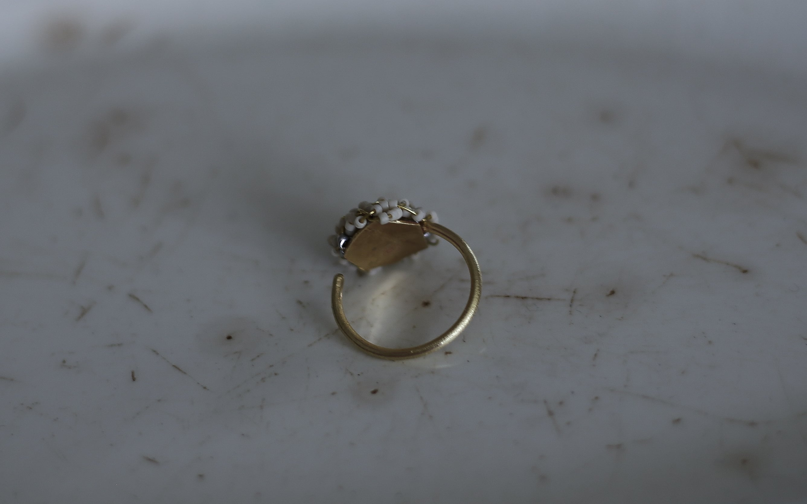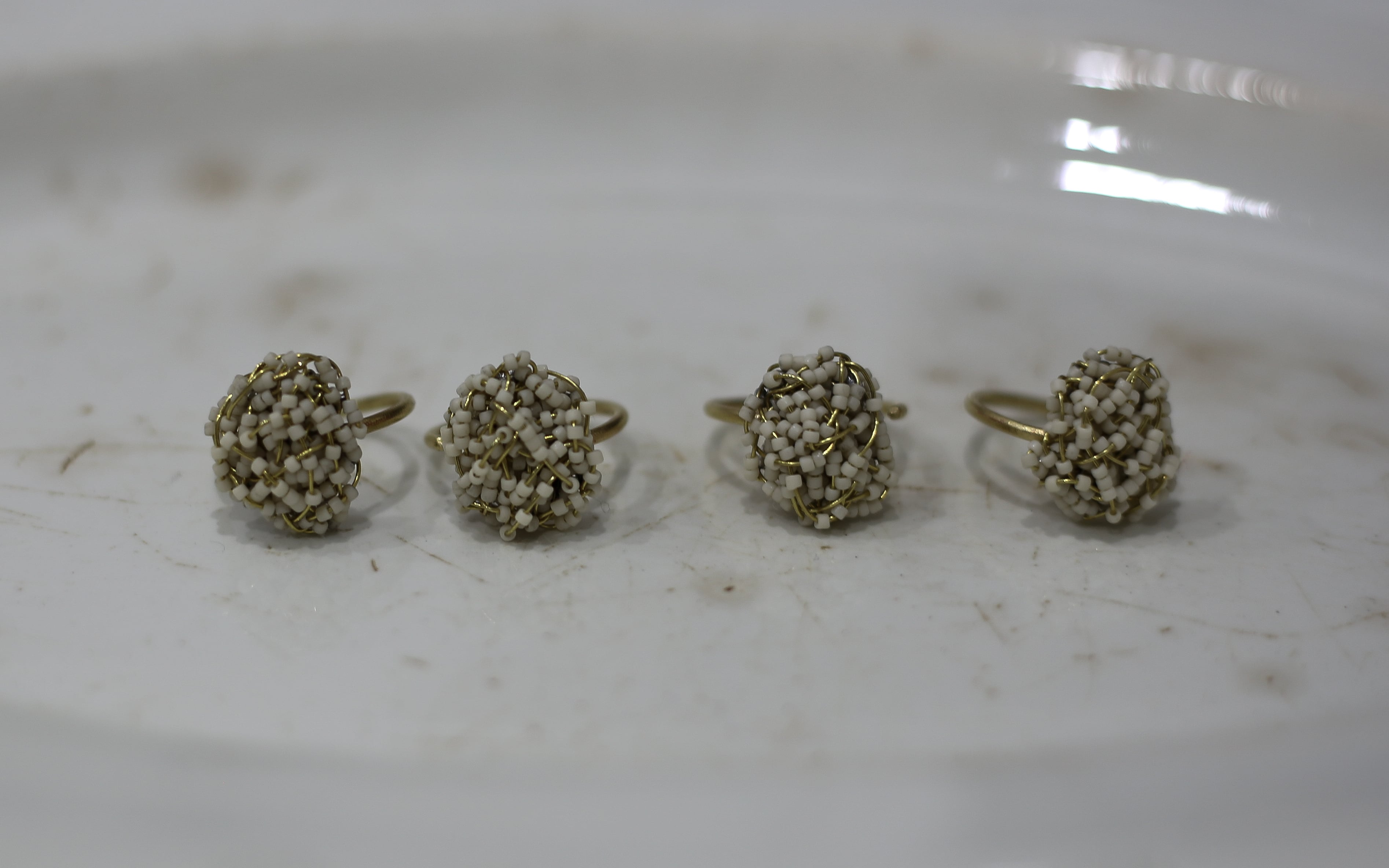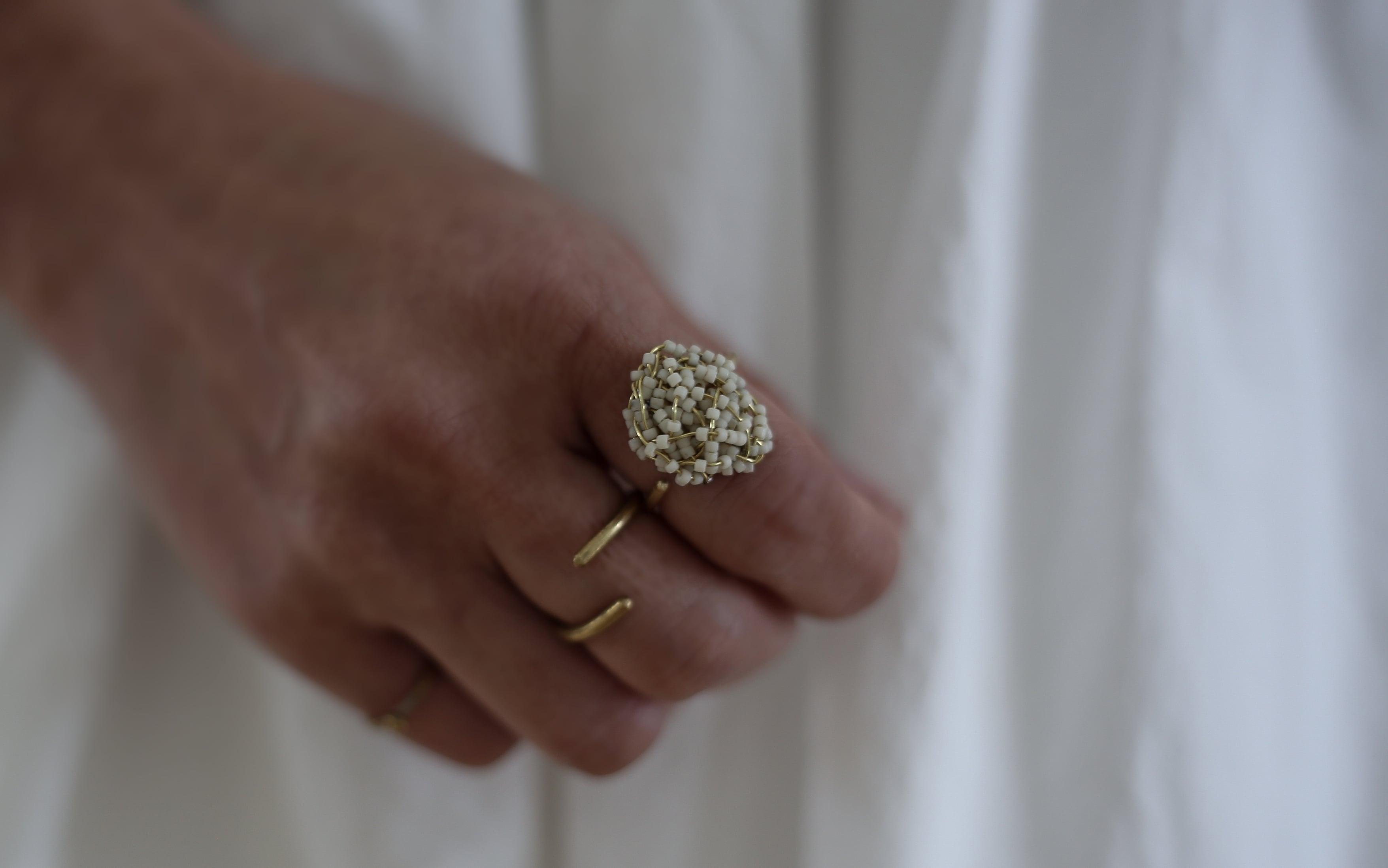 真鍮のアーム、真鍮とプレートにビーズを施したリング。