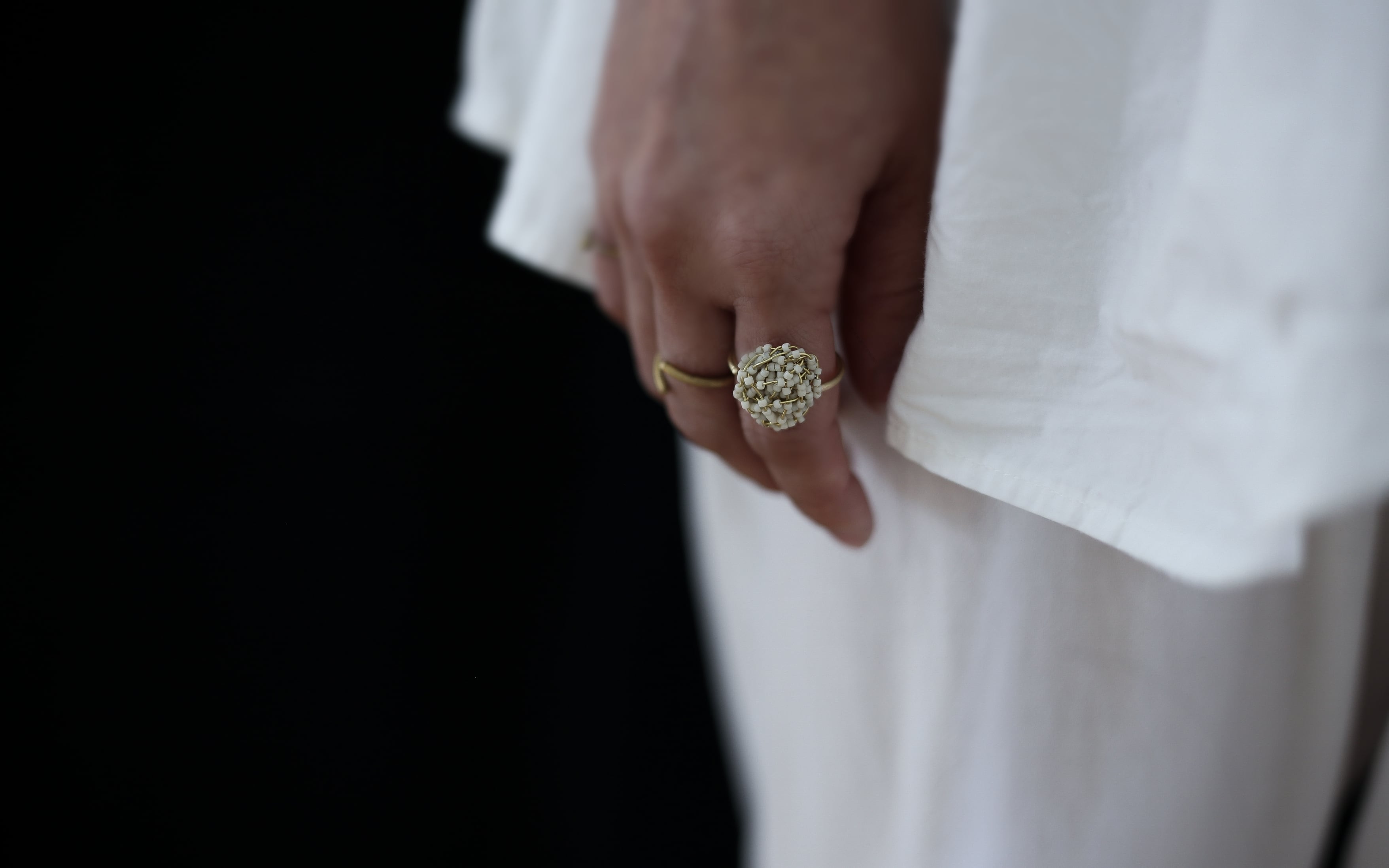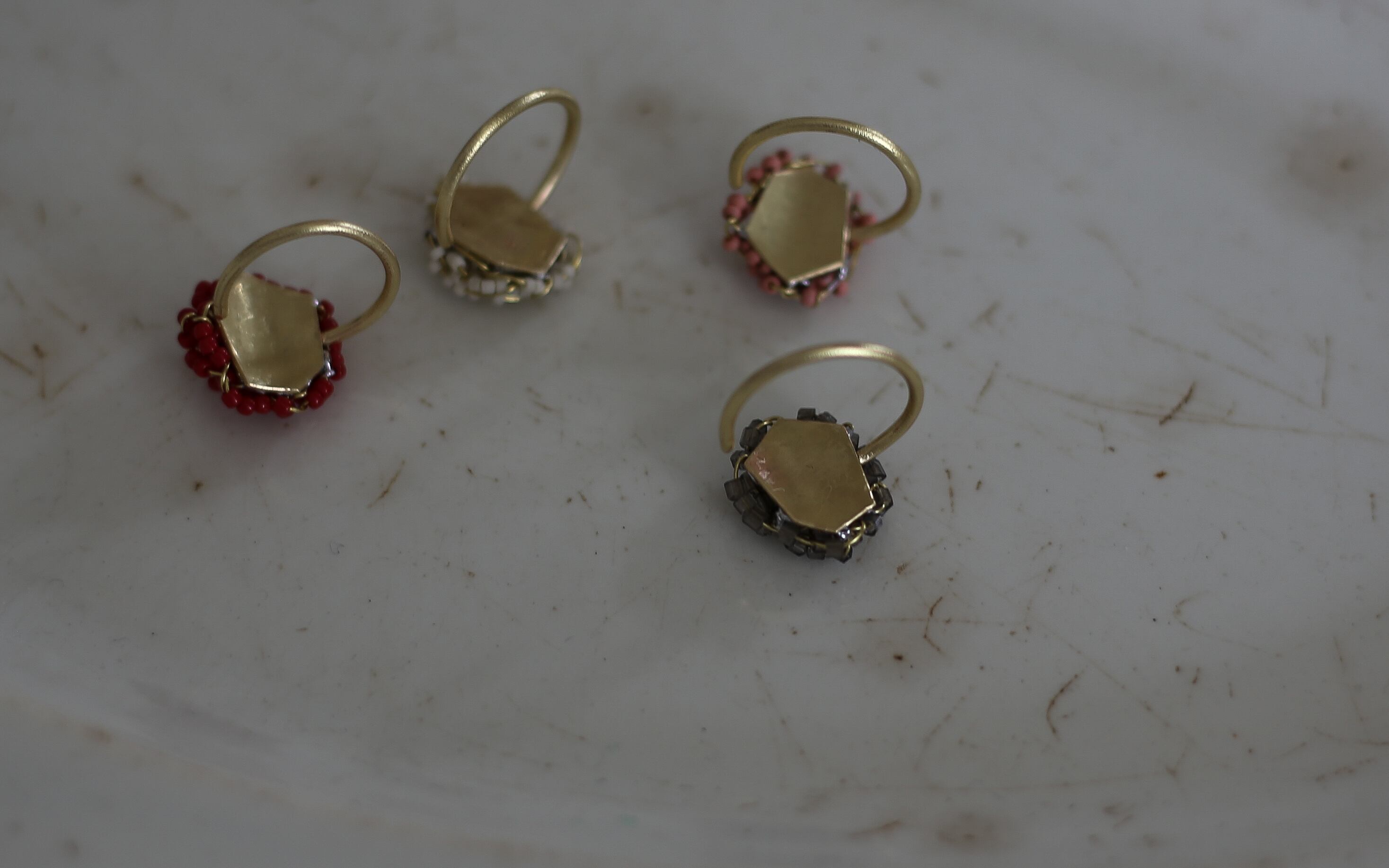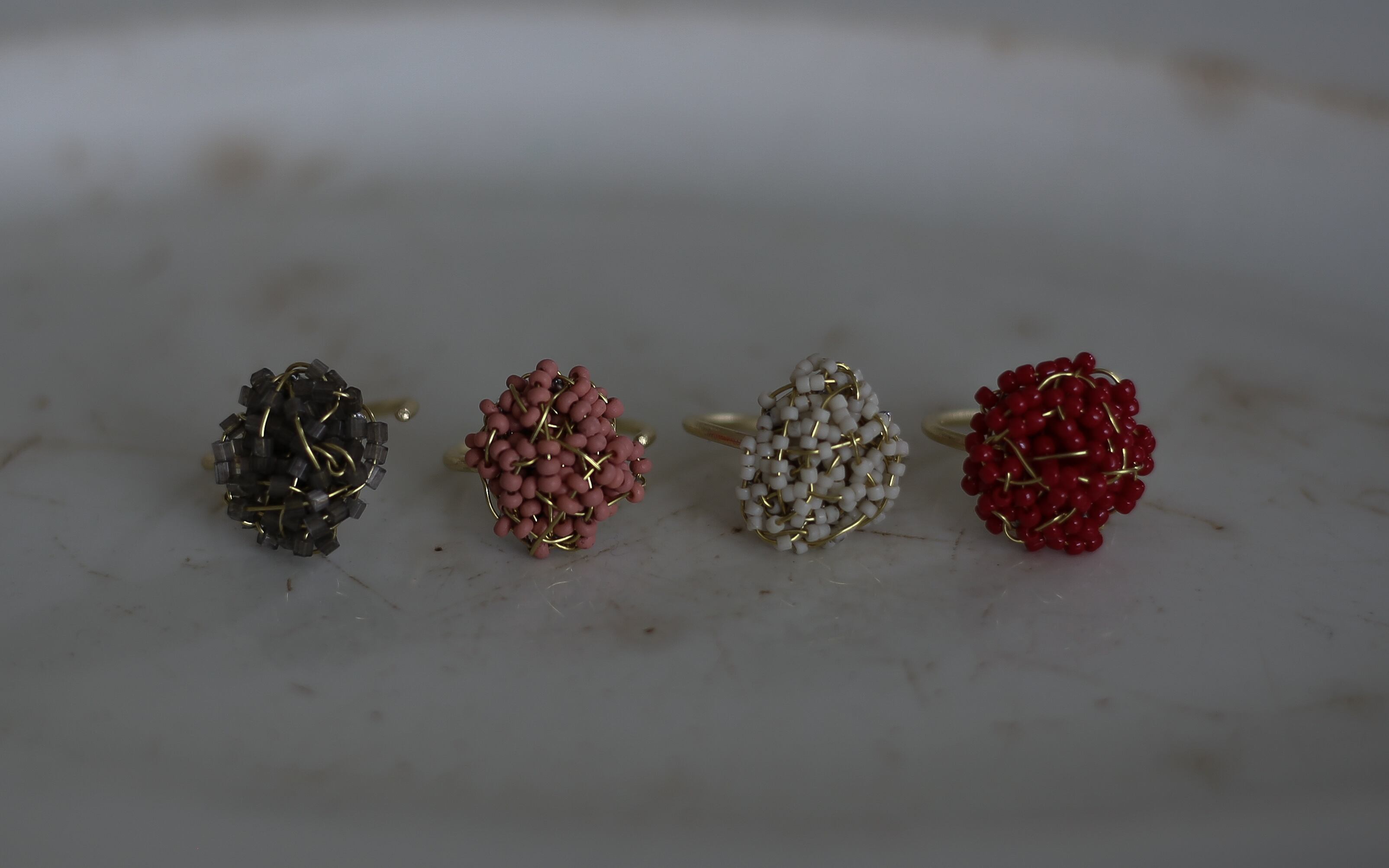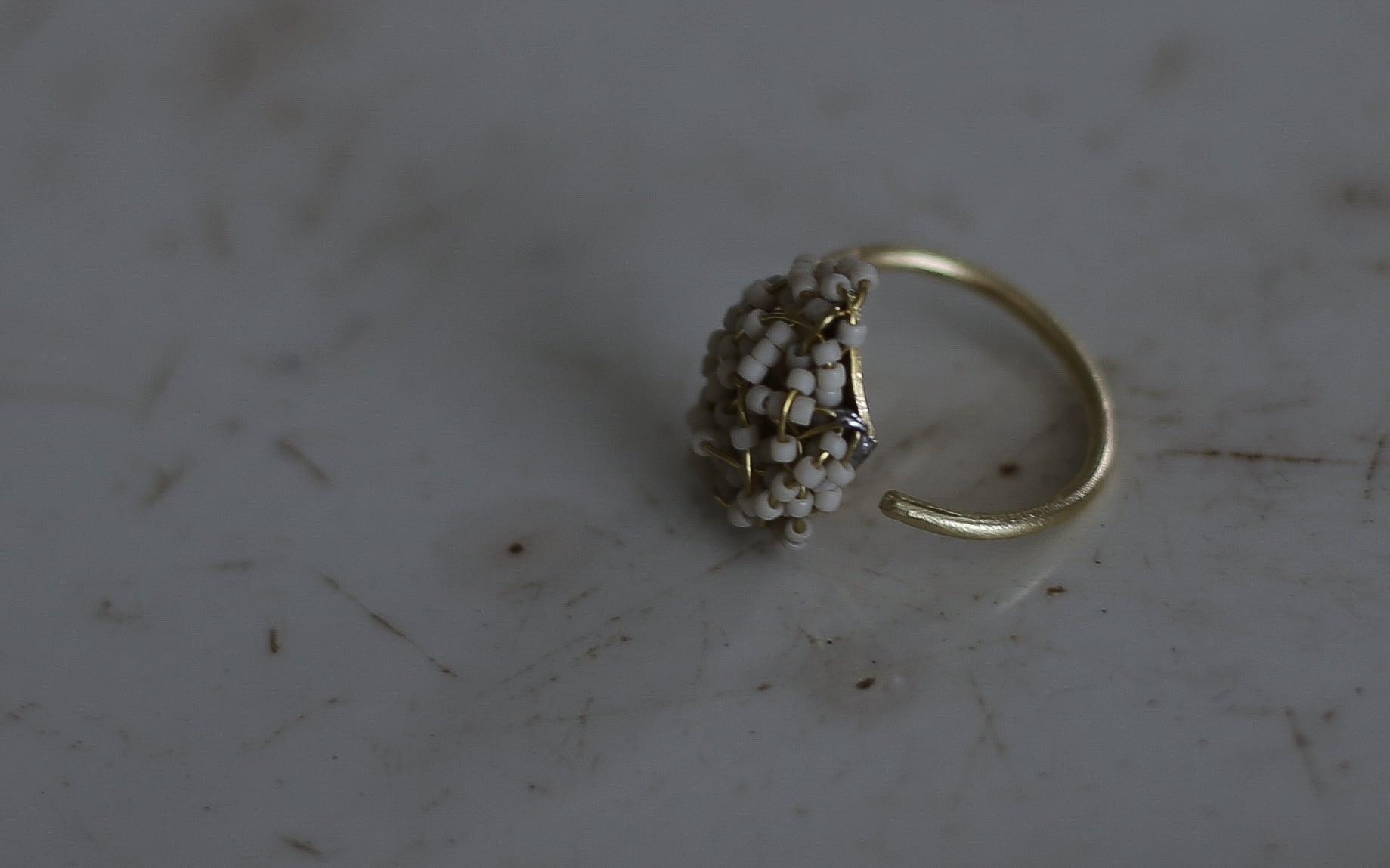真鍮のアーム、真鍮とプレートにビーズを施したリング。