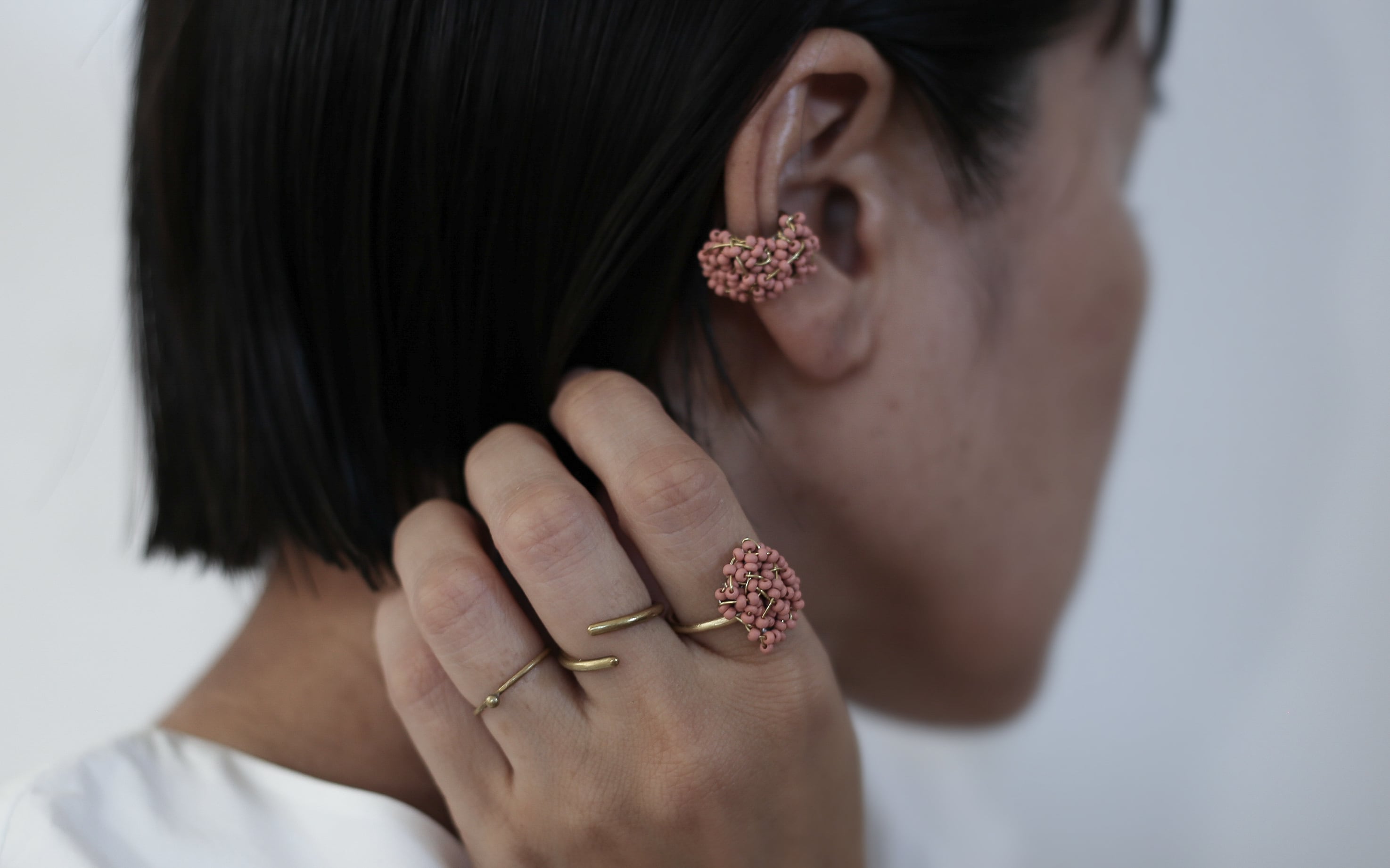 真鍮のアーム、真鍮とプレートにビーズを施したリング。