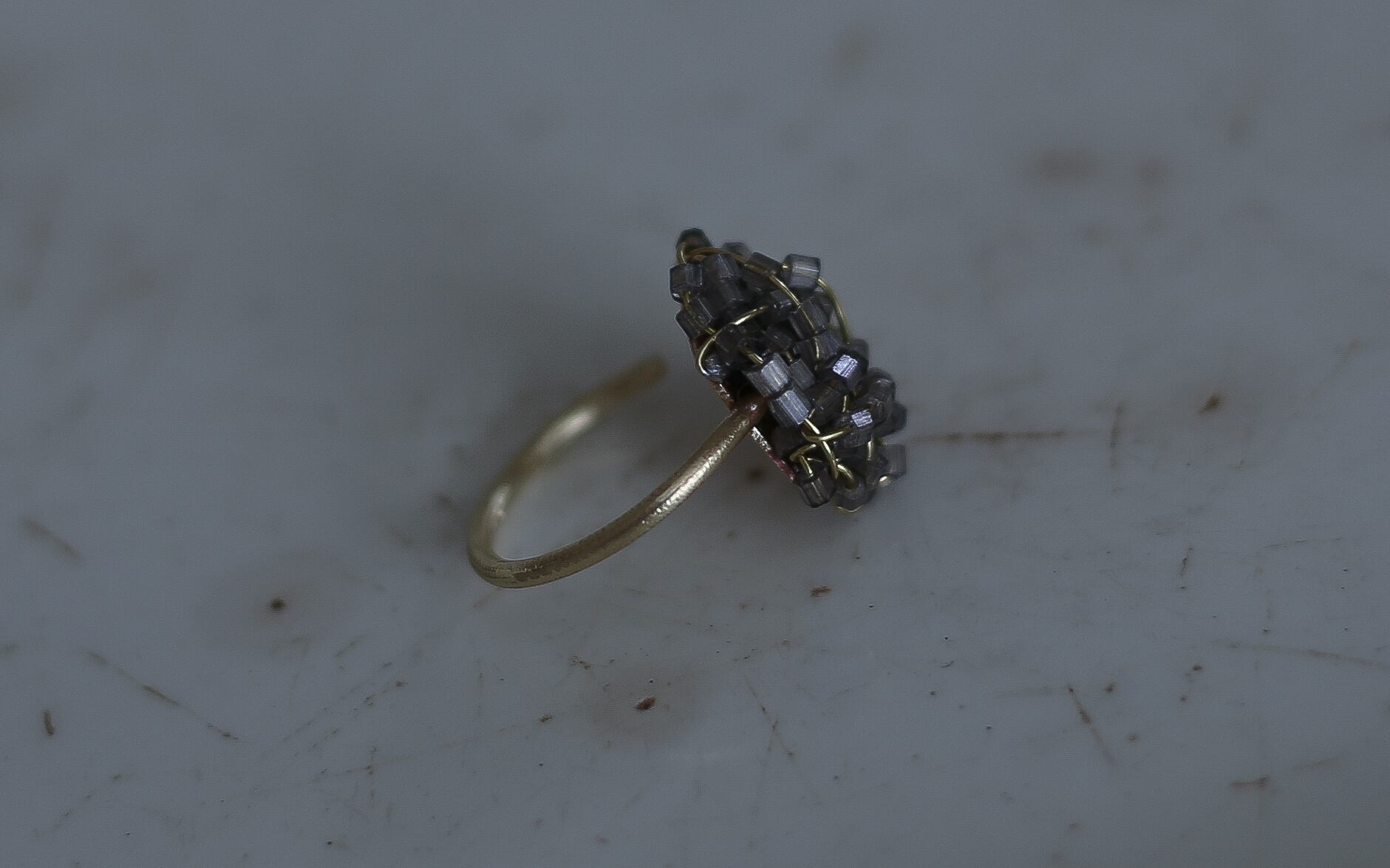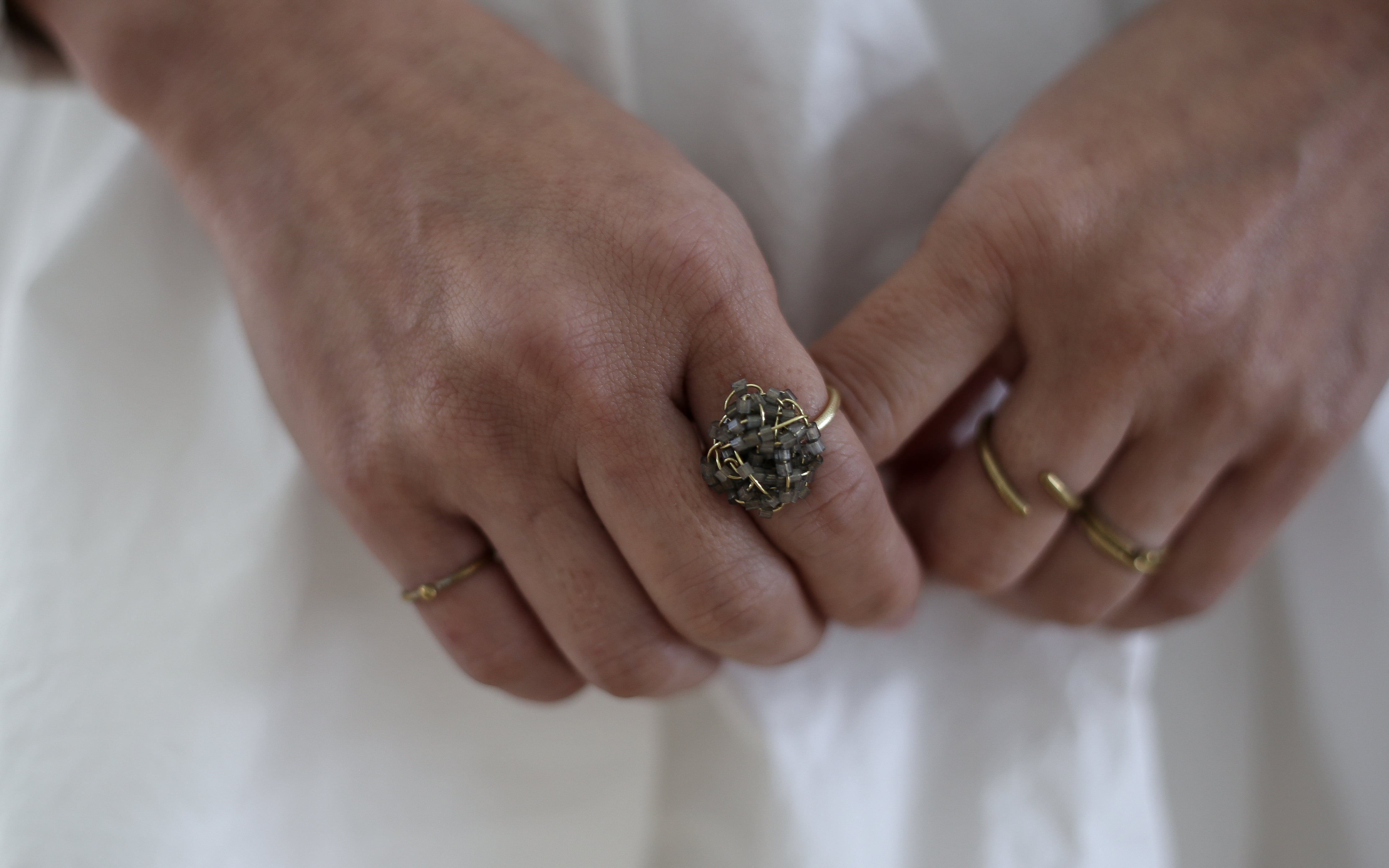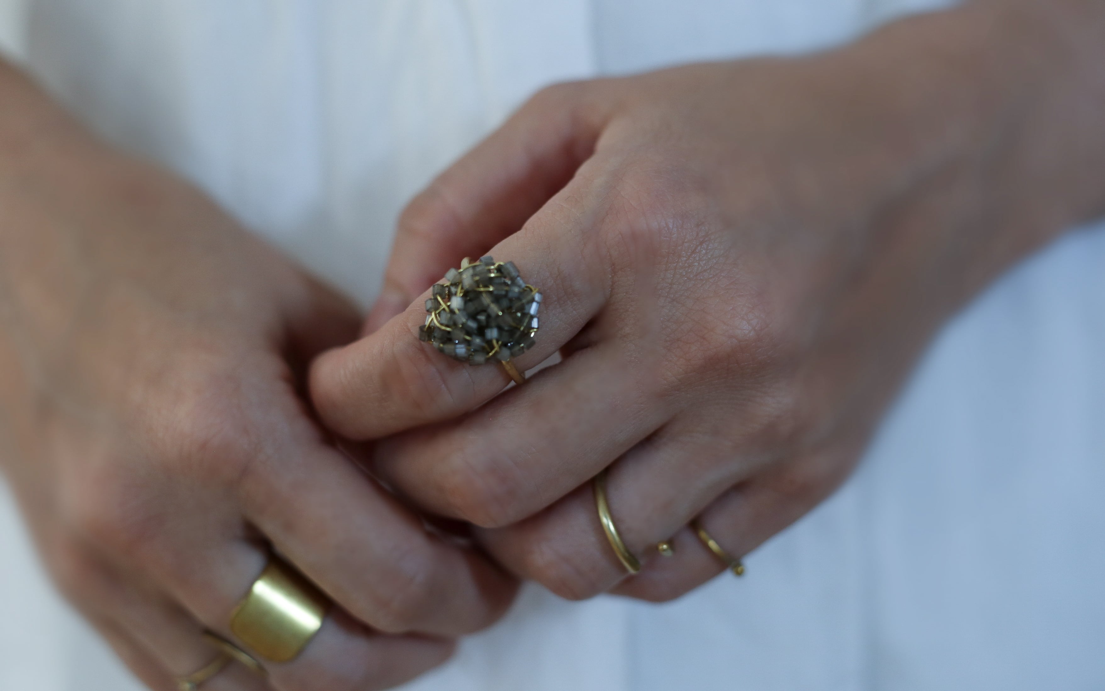 真鍮のアーム、真鍮とプレートにビーズを施したリング。
