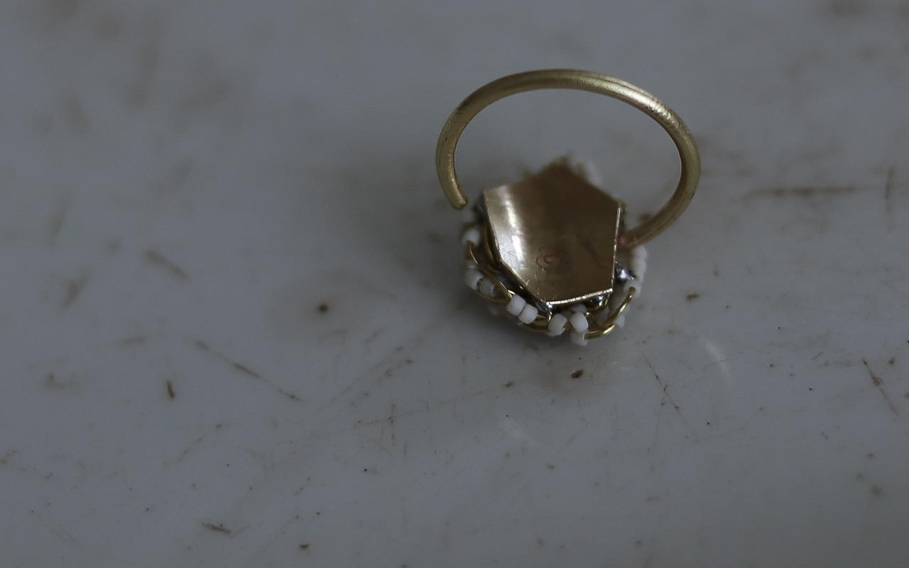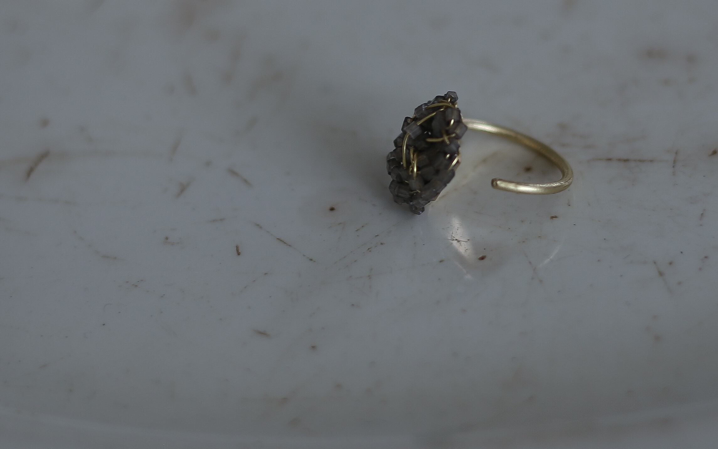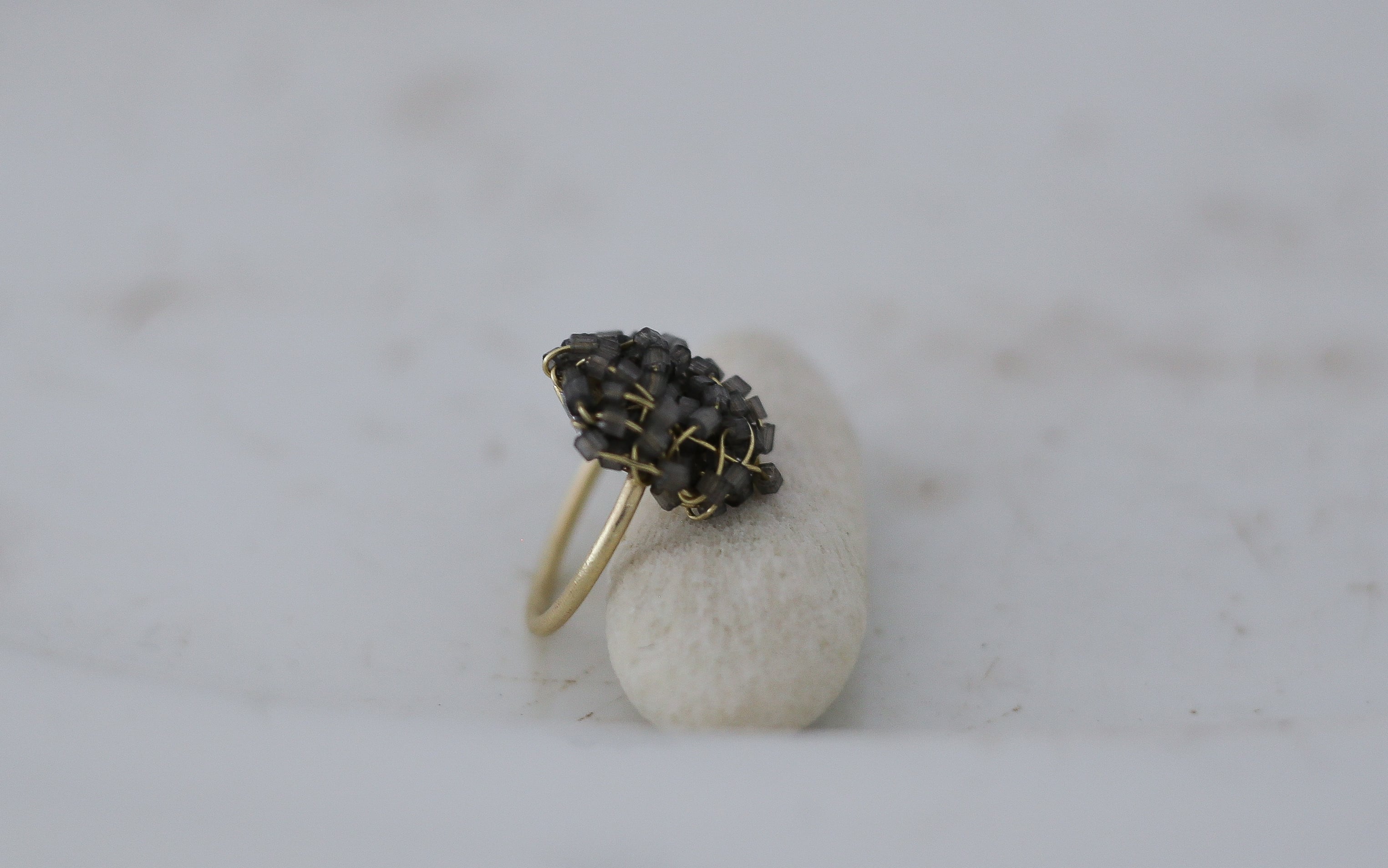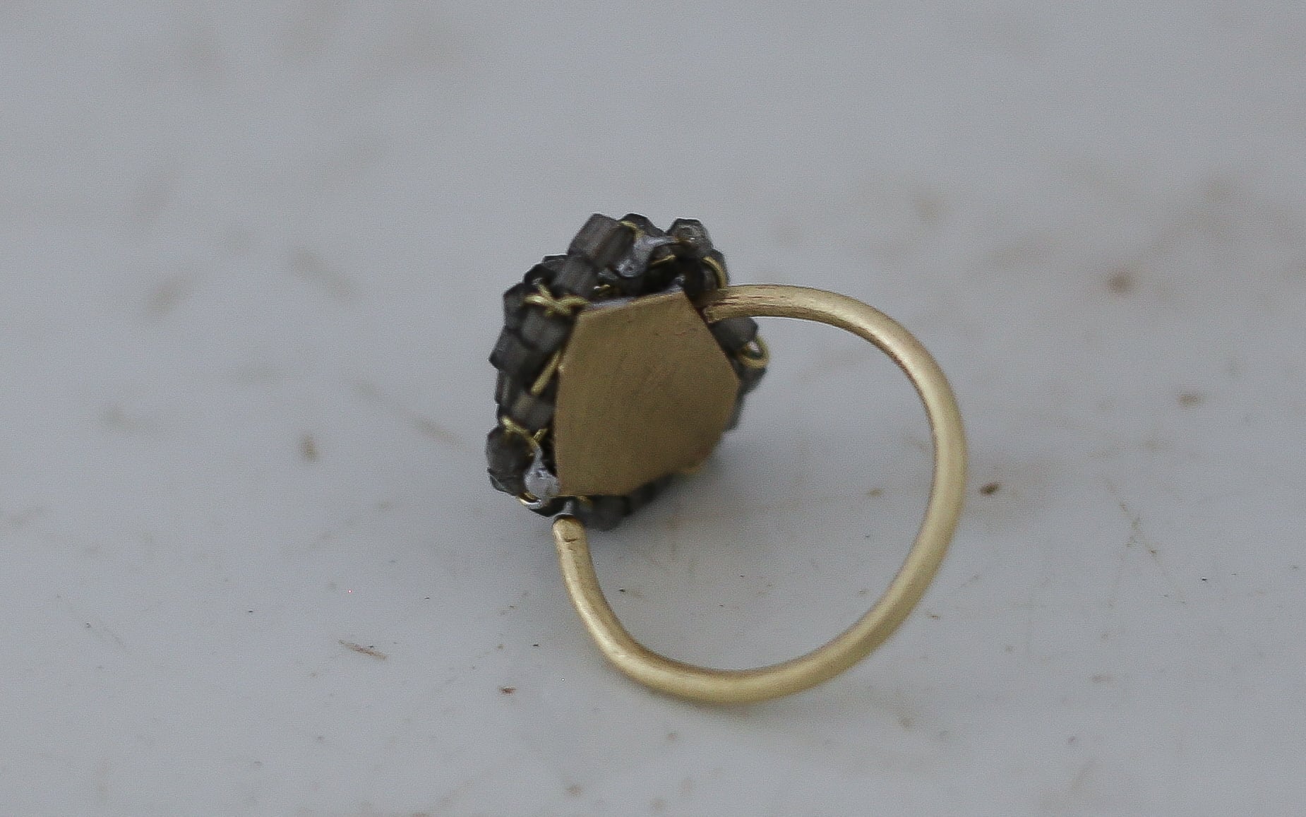 真鍮のアーム、真鍮とプレートにビーズを施したリング。