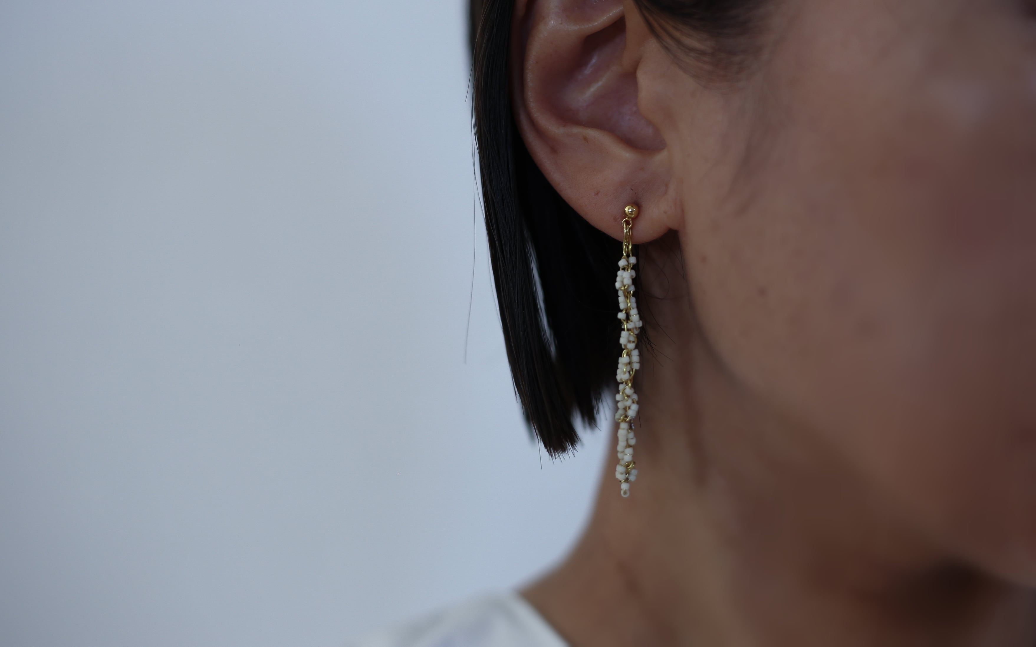 1.2ミリのビーズに真鍮のワイヤーでパーツを仕立ております。