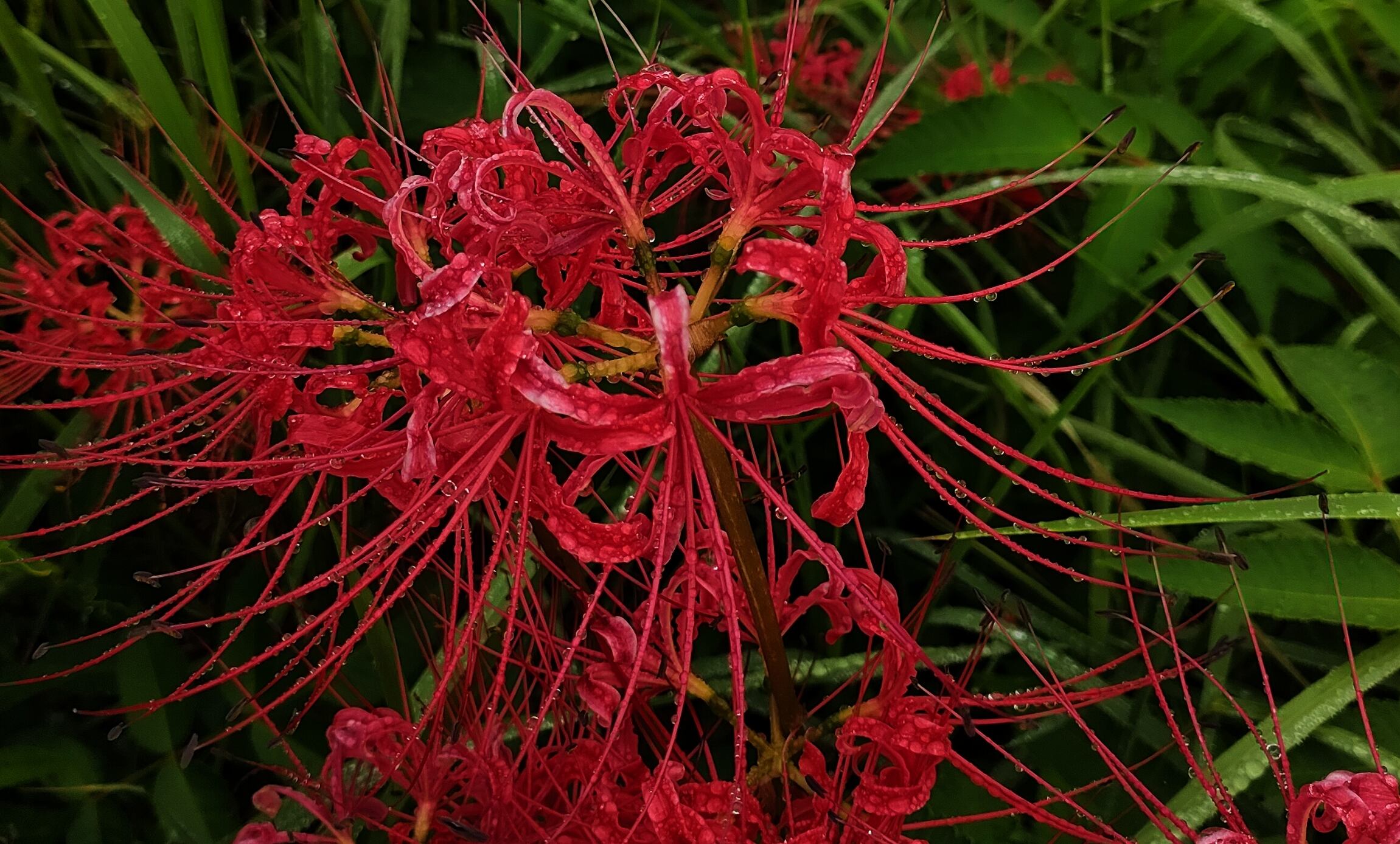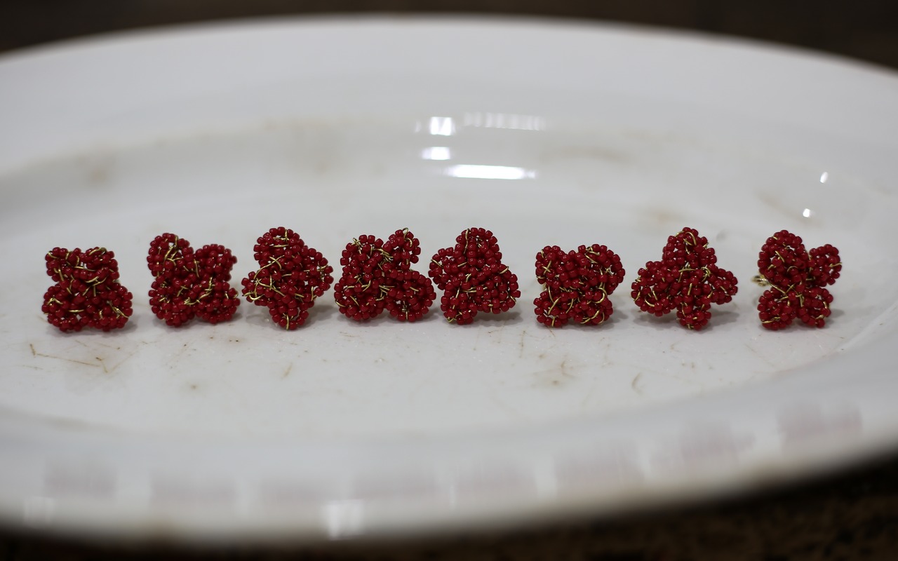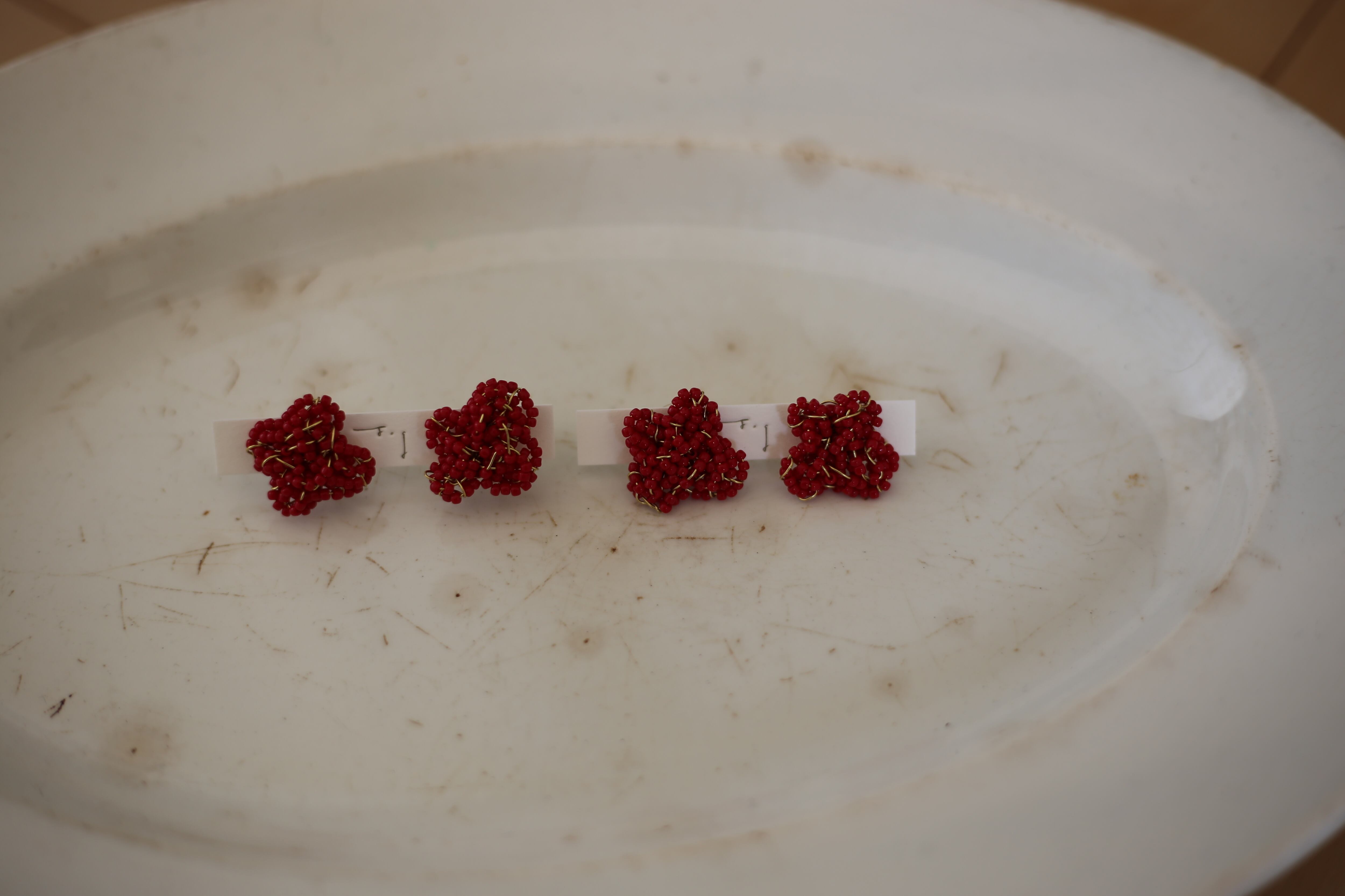 赤のビーズに真鍮のワイヤーで仕立ております。