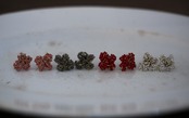 不透明でツヤのない、乾いたような風合いで、砂糖菓子のような可愛らしさがあるチェコ産のビーズです。