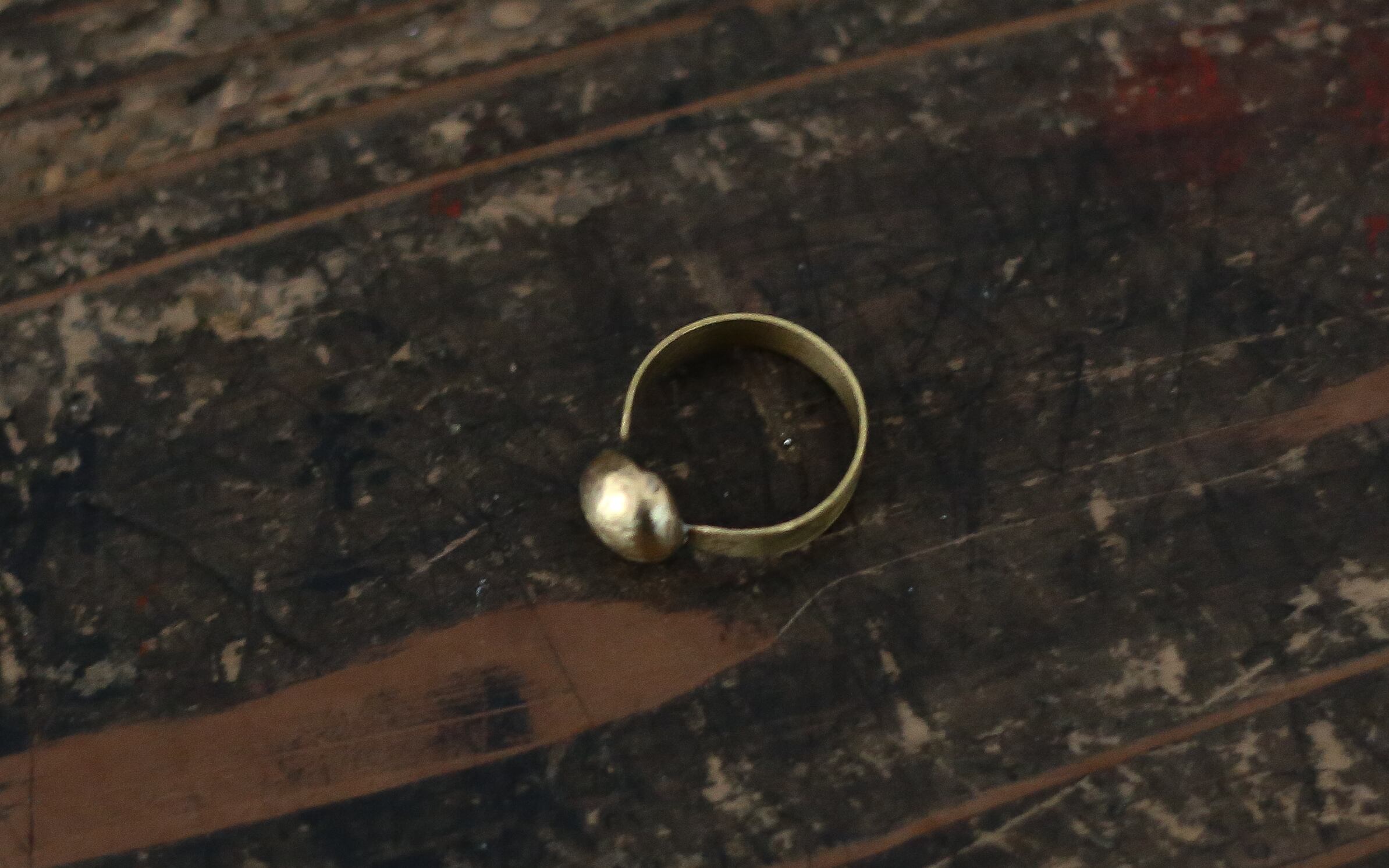 トップのモチーフは熱で真鍮を溶かし途中で偶然できた形です。