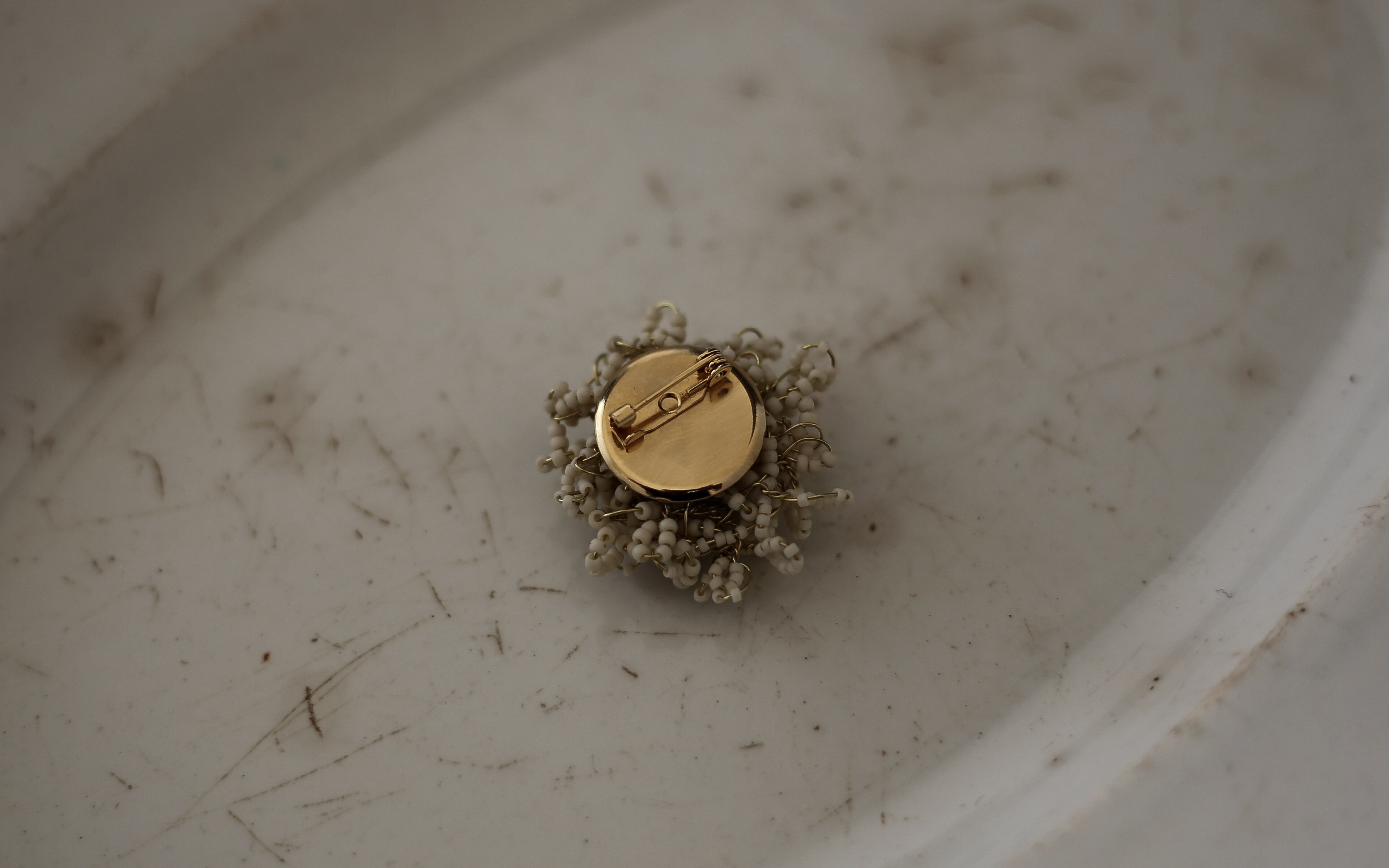 アイボリービーズのブローチで最も小さいデザインです。普段使いもオケージョンもいつでもお使いいただきやすい大きさとなっております。everyday=毎日 と名付けました。