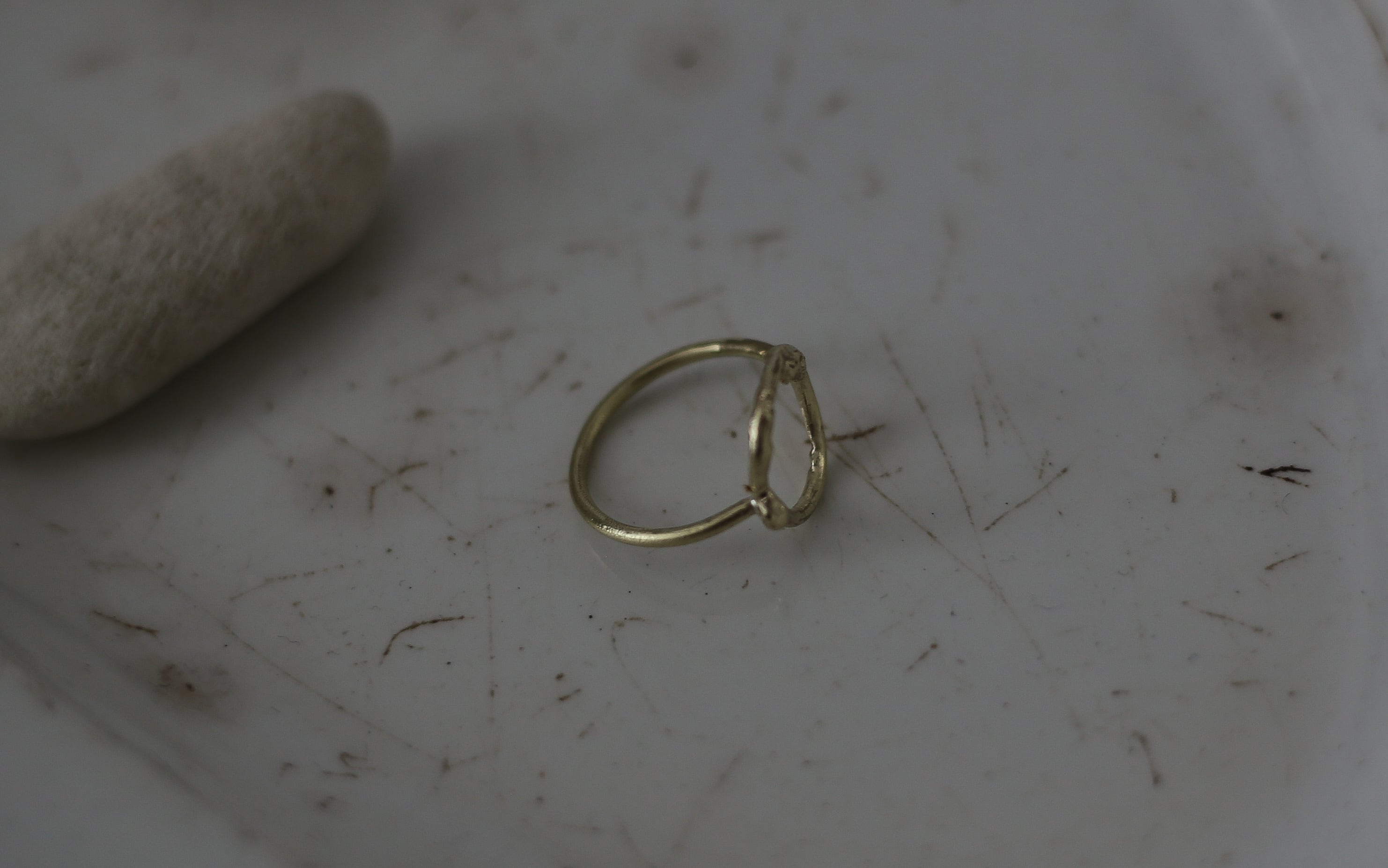トップのモチーフは熱で真鍮を溶かし途中で偶然できた形です。