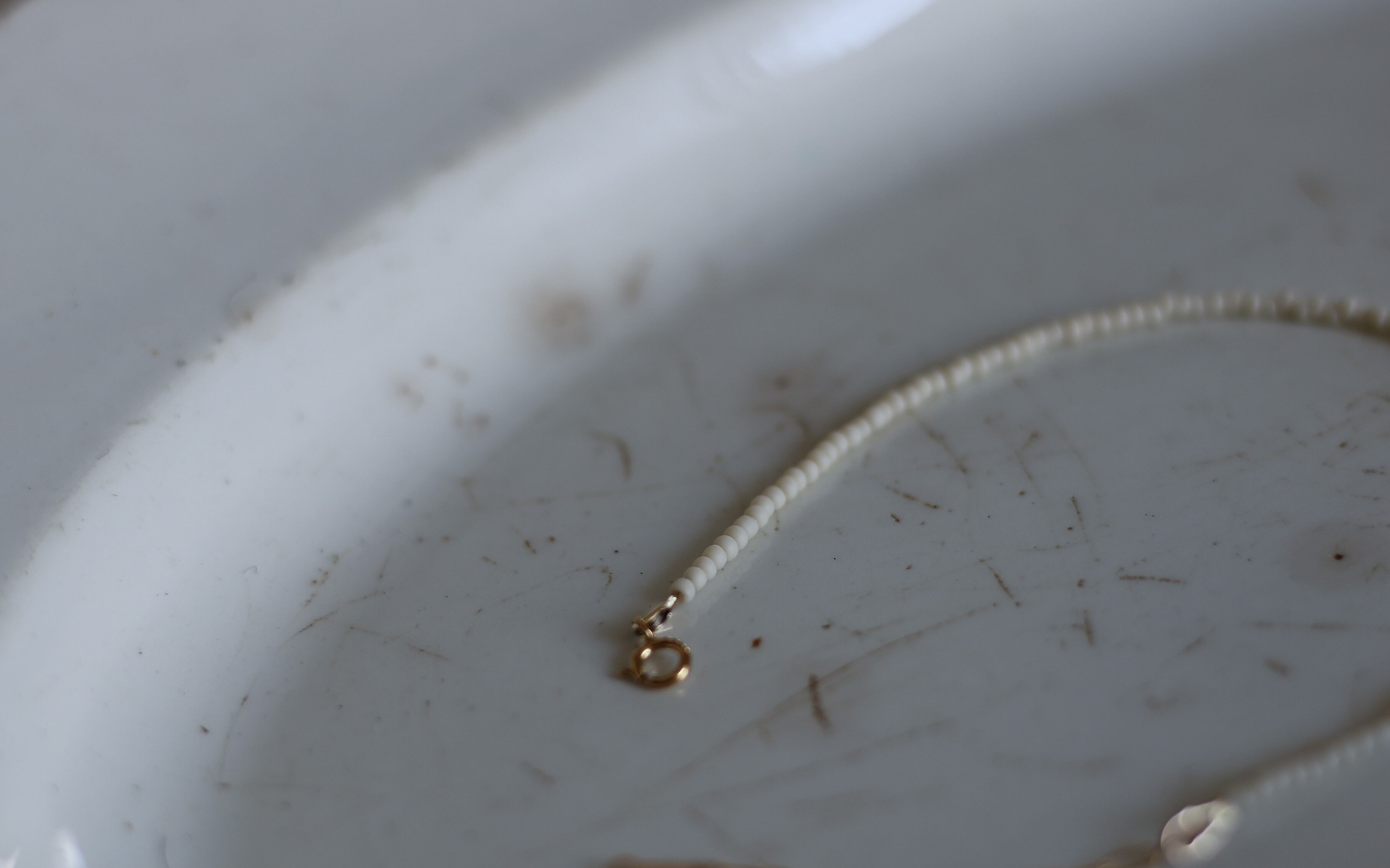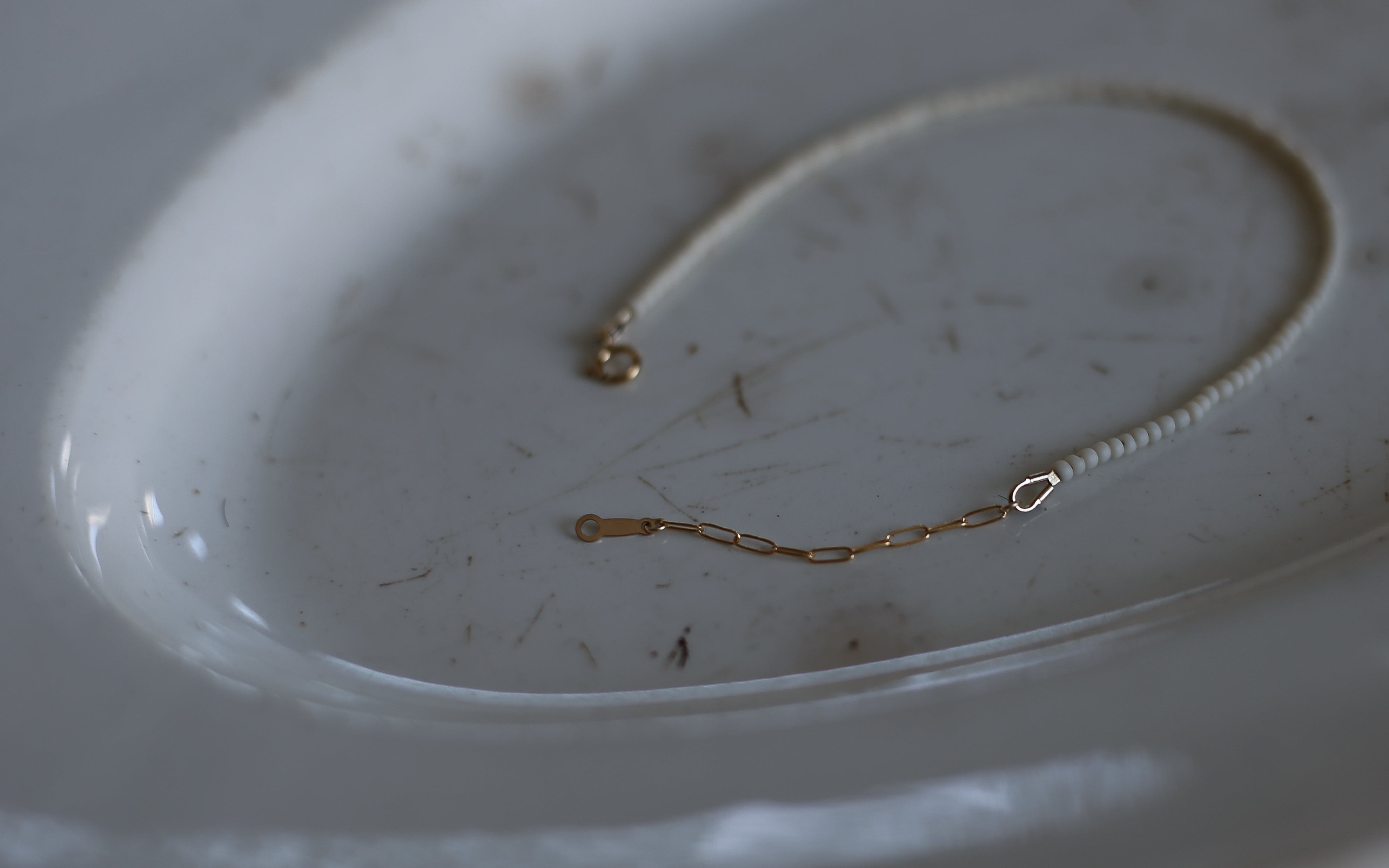 繊細なビーズの連なりと、14KGFが肌に馴染みます。