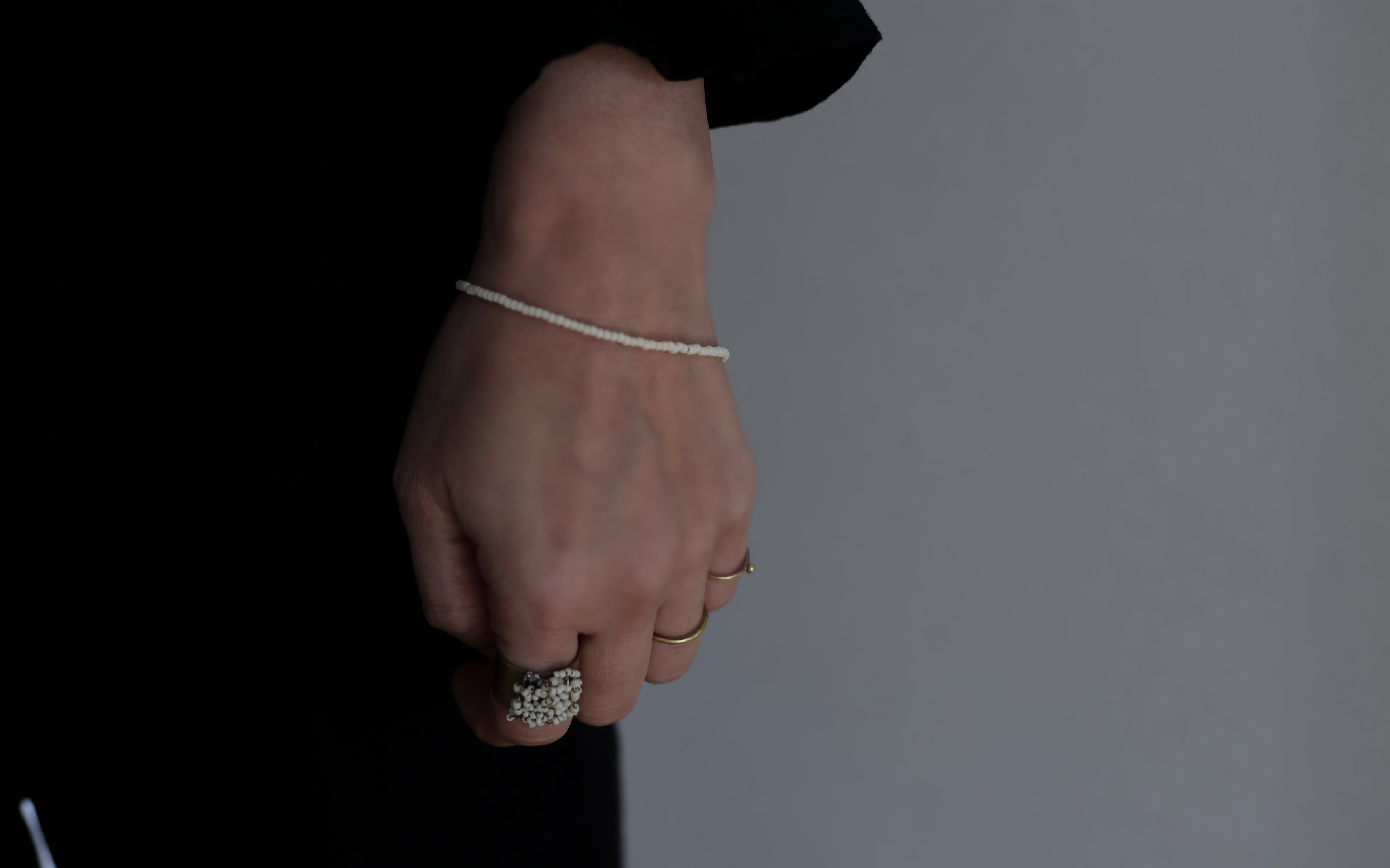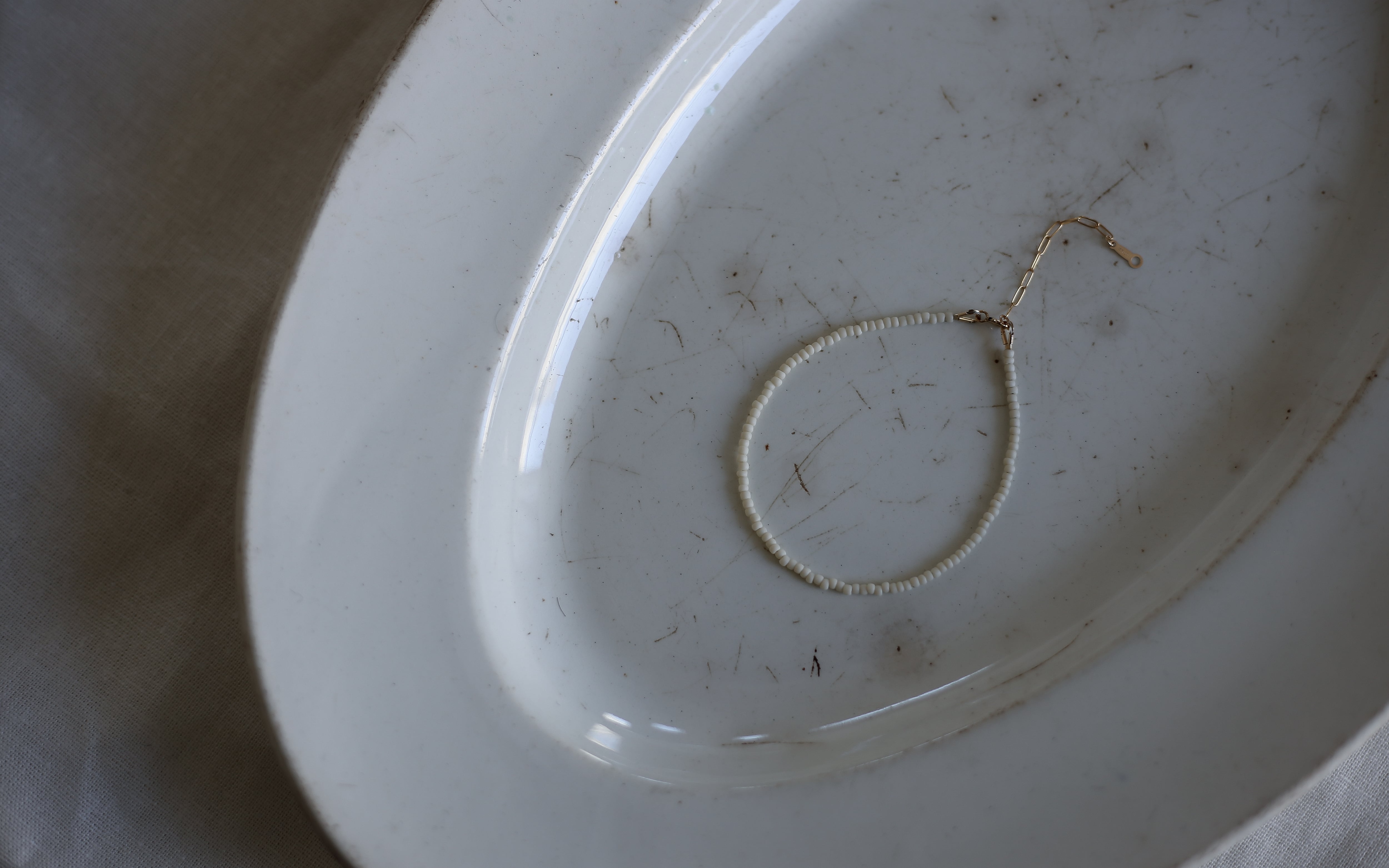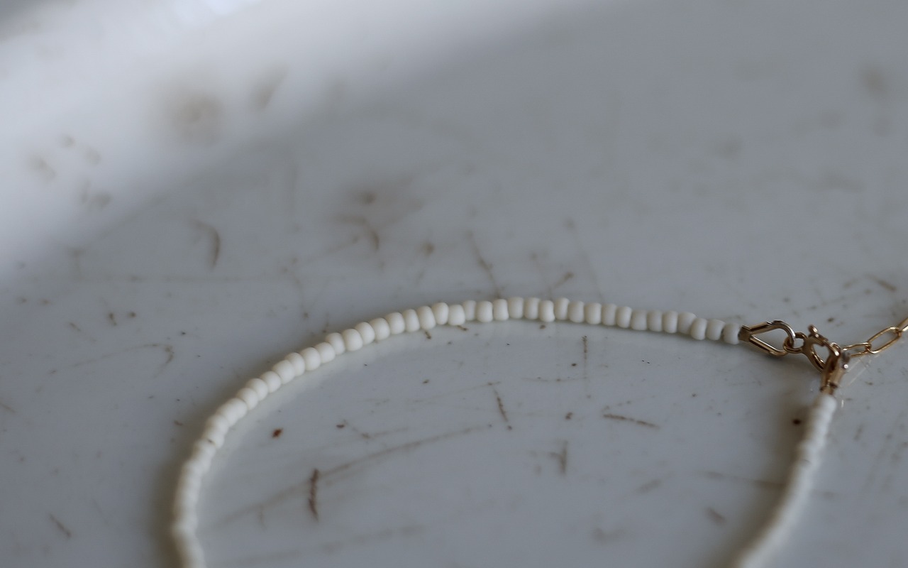 艶のないアイボリービーズで仕立てた、手元に静かに沿うtemoto bracelet。