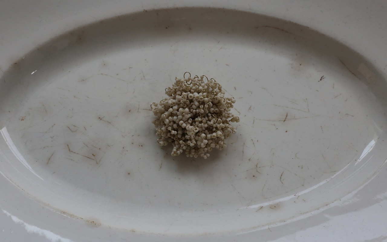 規則的な円ではなく、ビーズが不規則に凸凹しています。