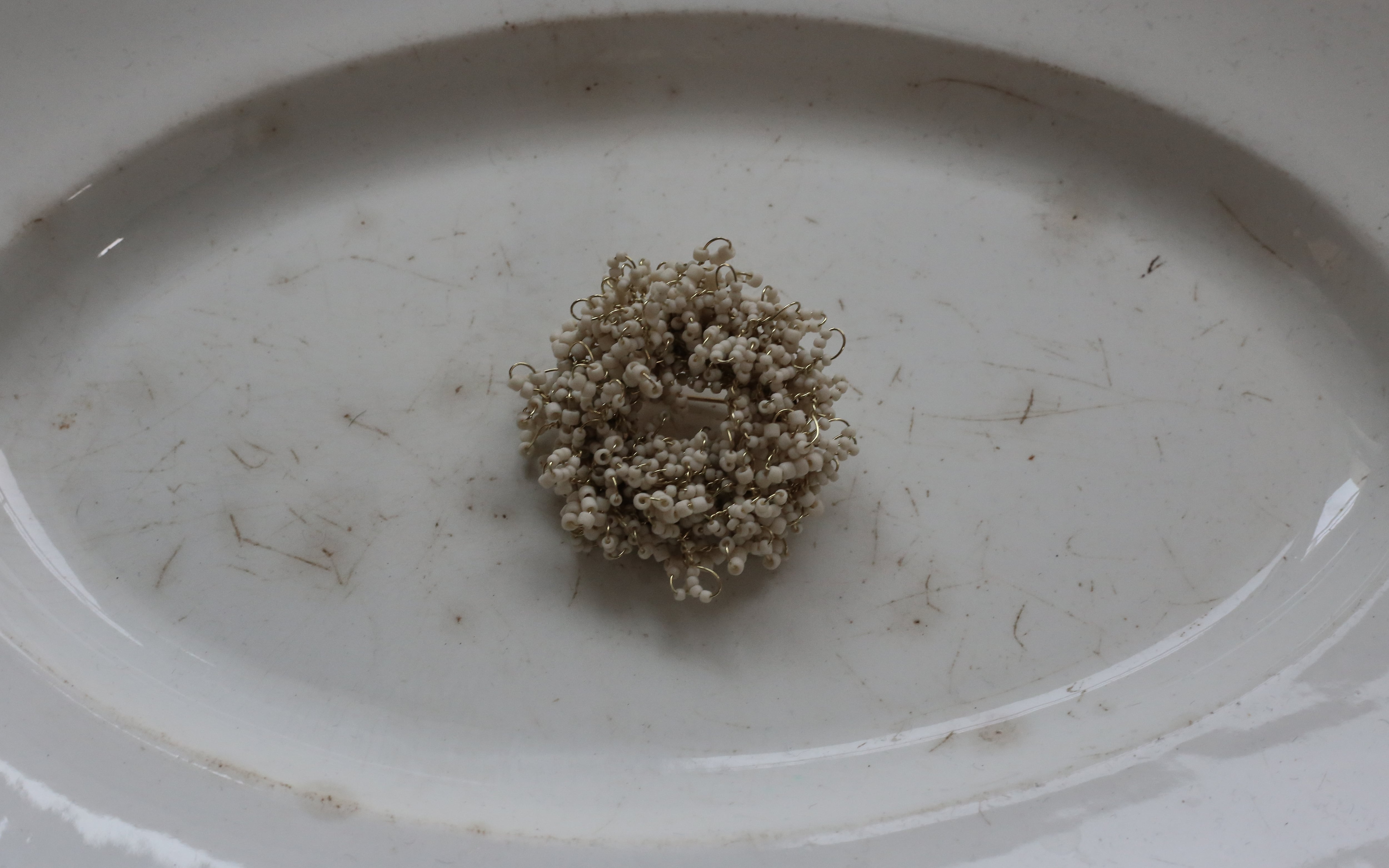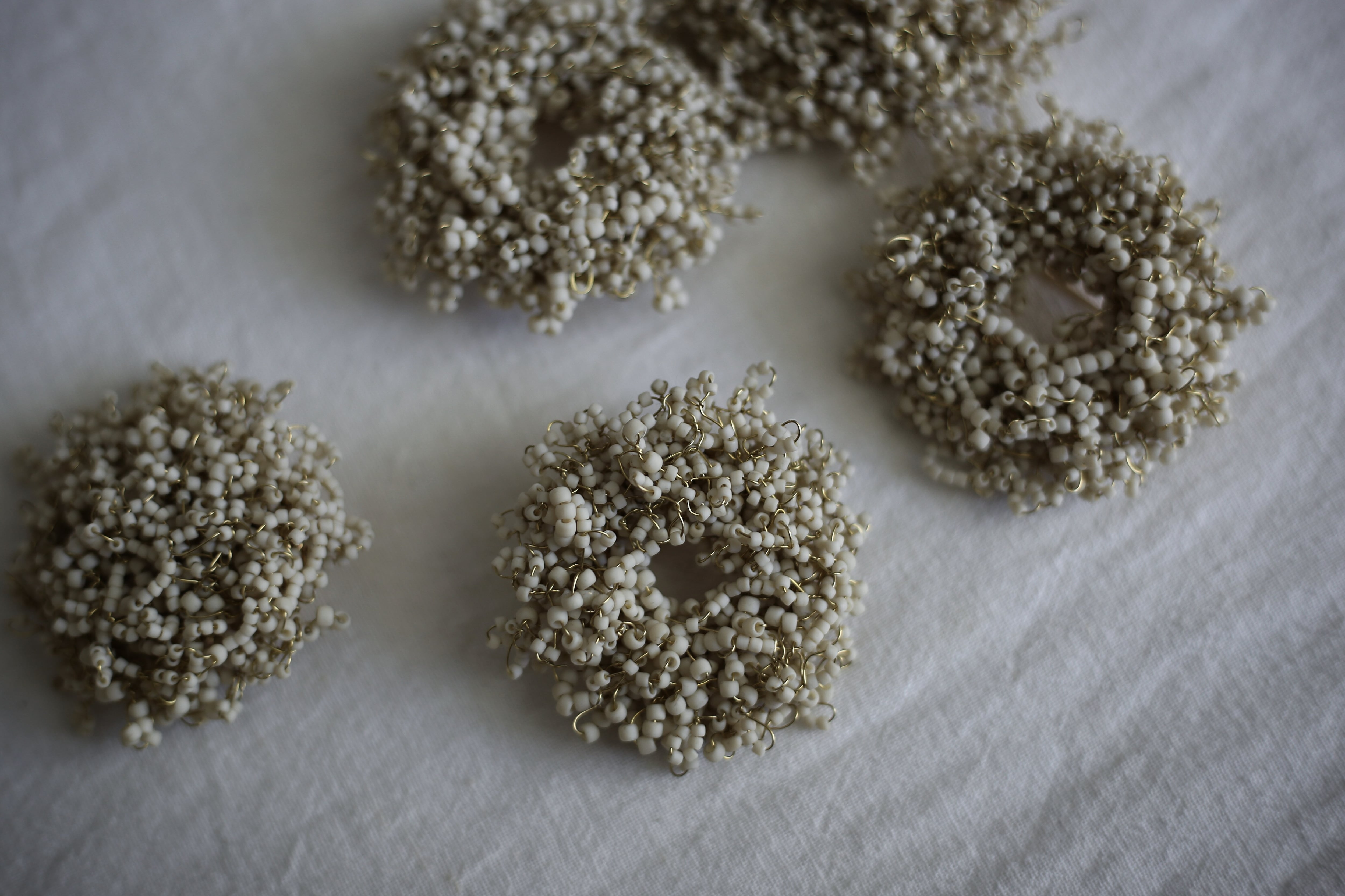 規則的な円ではなく、ビーズが不規則に凸凹しています。