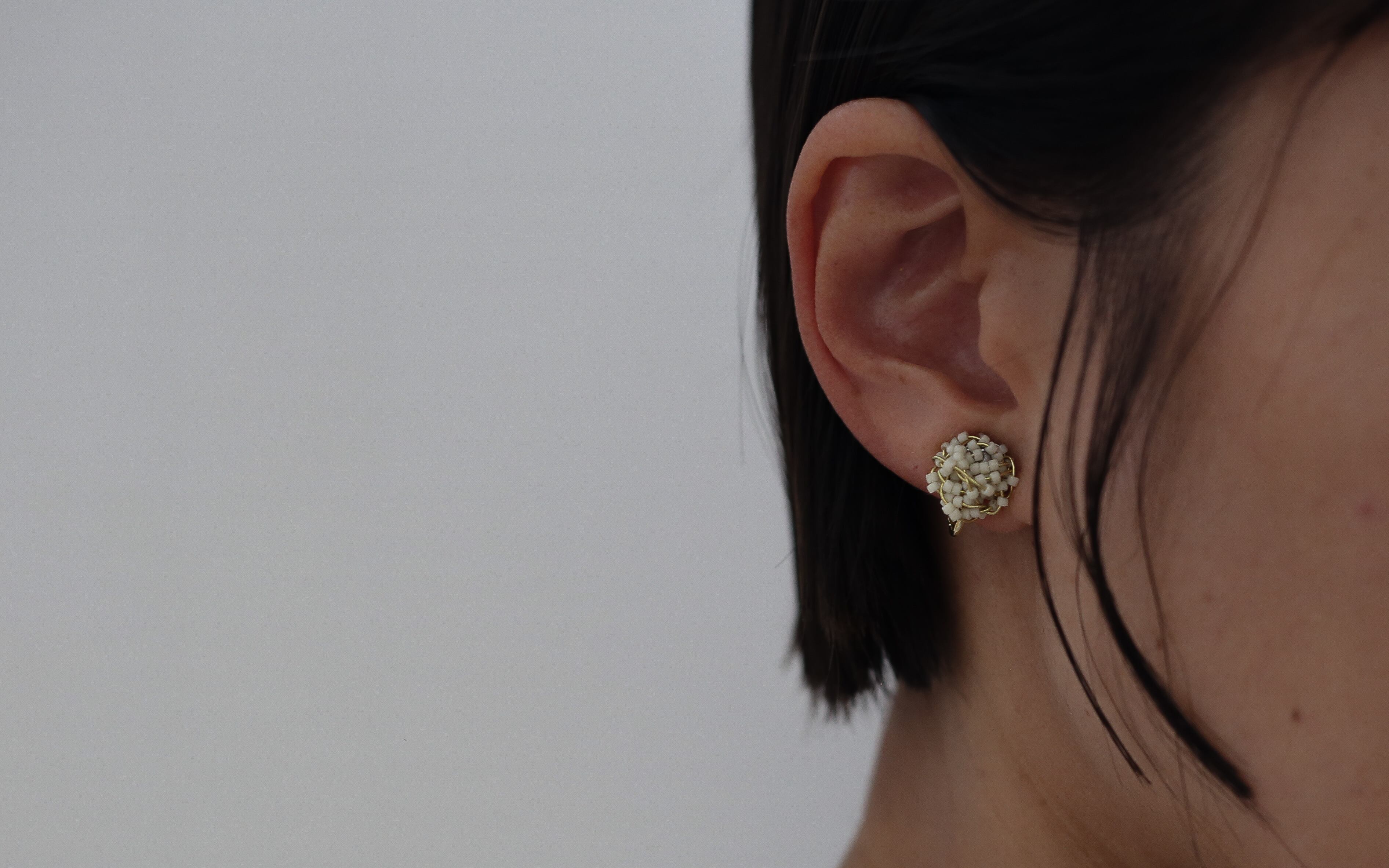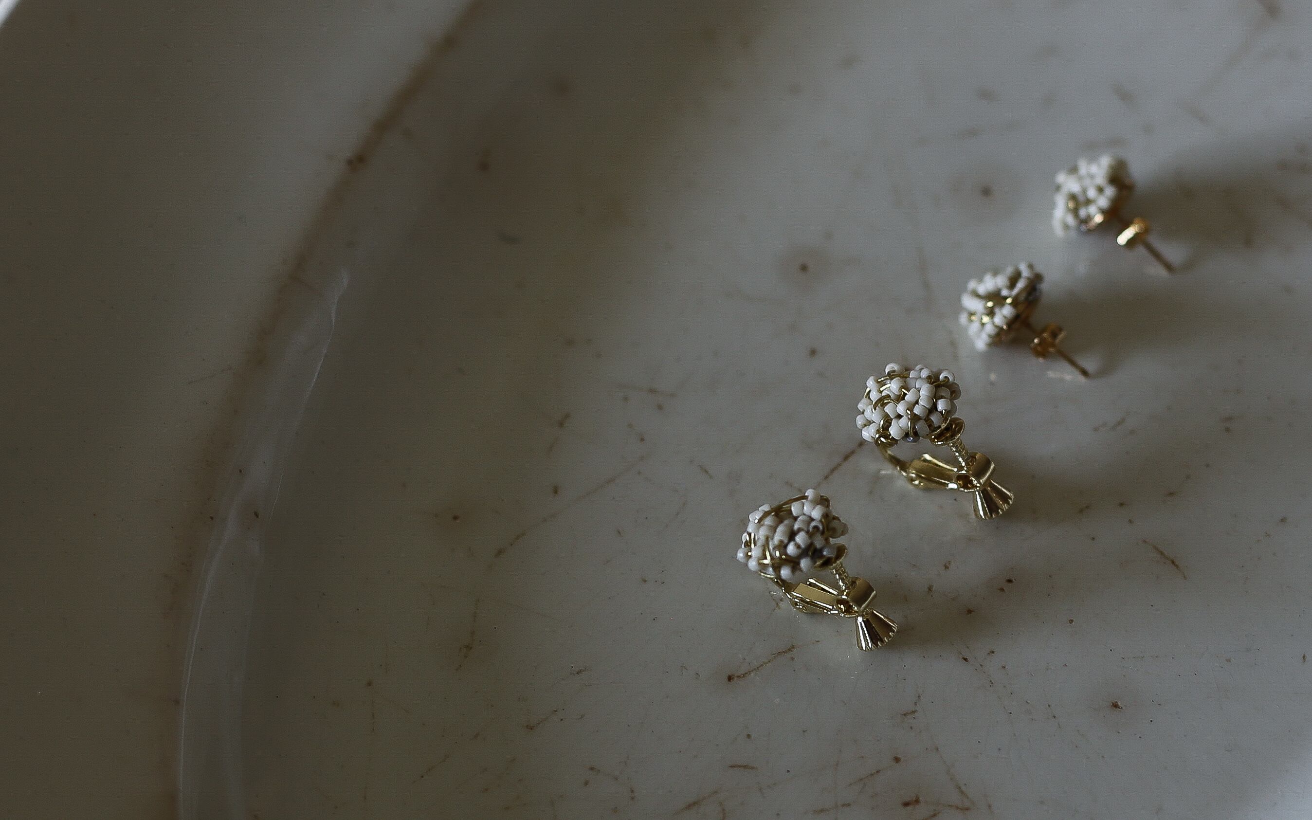 こちらの極小ビーズは、外径1.5mmの艶消しビーズです。Fogでよく使用しているビーズより小さいビーズを使用し、より繊細に表現しております。