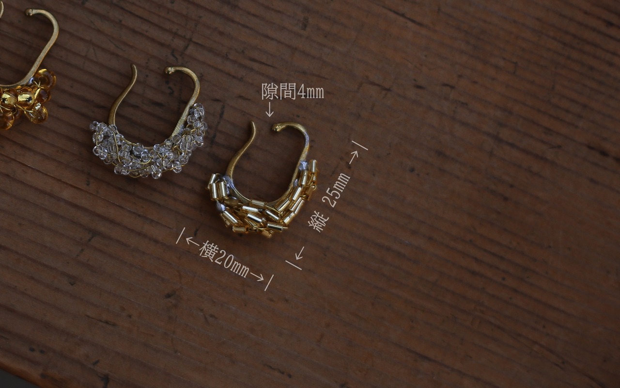 一点一点手作りですので、ビーズの位置、ワイヤーの傾き、ねじり具合等が写真と異なります。ご了承ください。