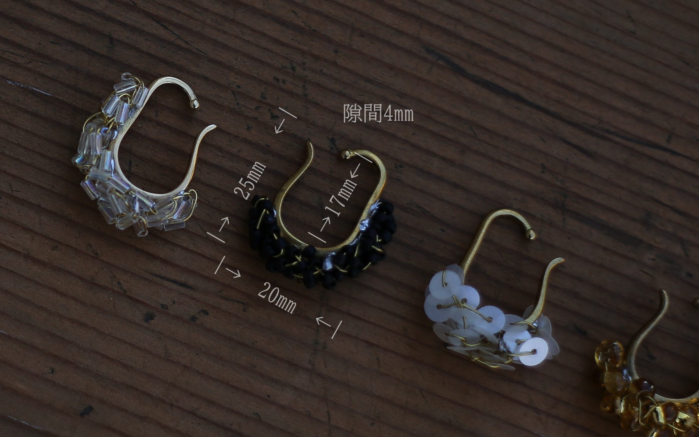 一点一点手作りですので、ビーズの位置、ワイヤーの傾き、ねじり具合等が写真と異なります。ご了承ください。