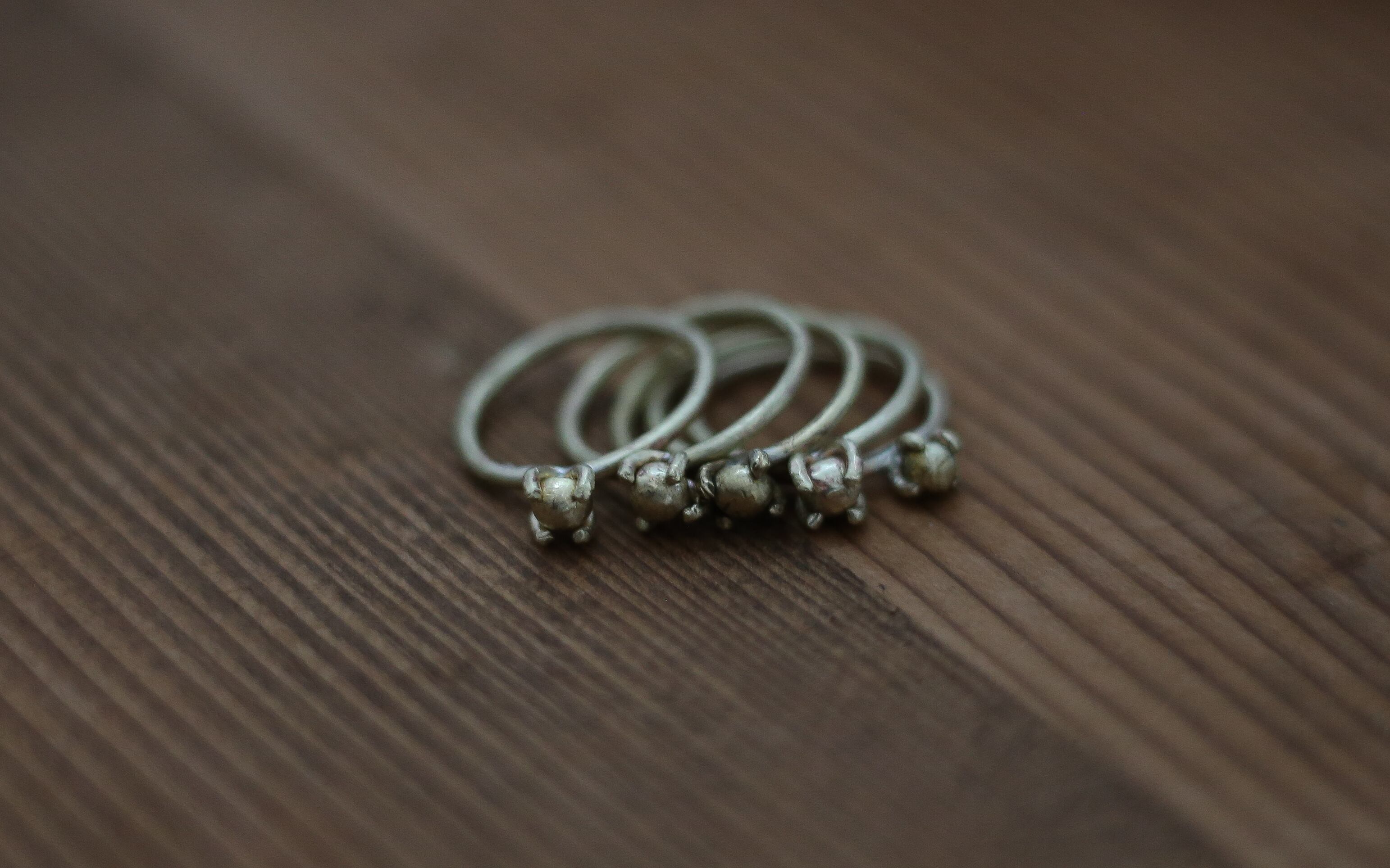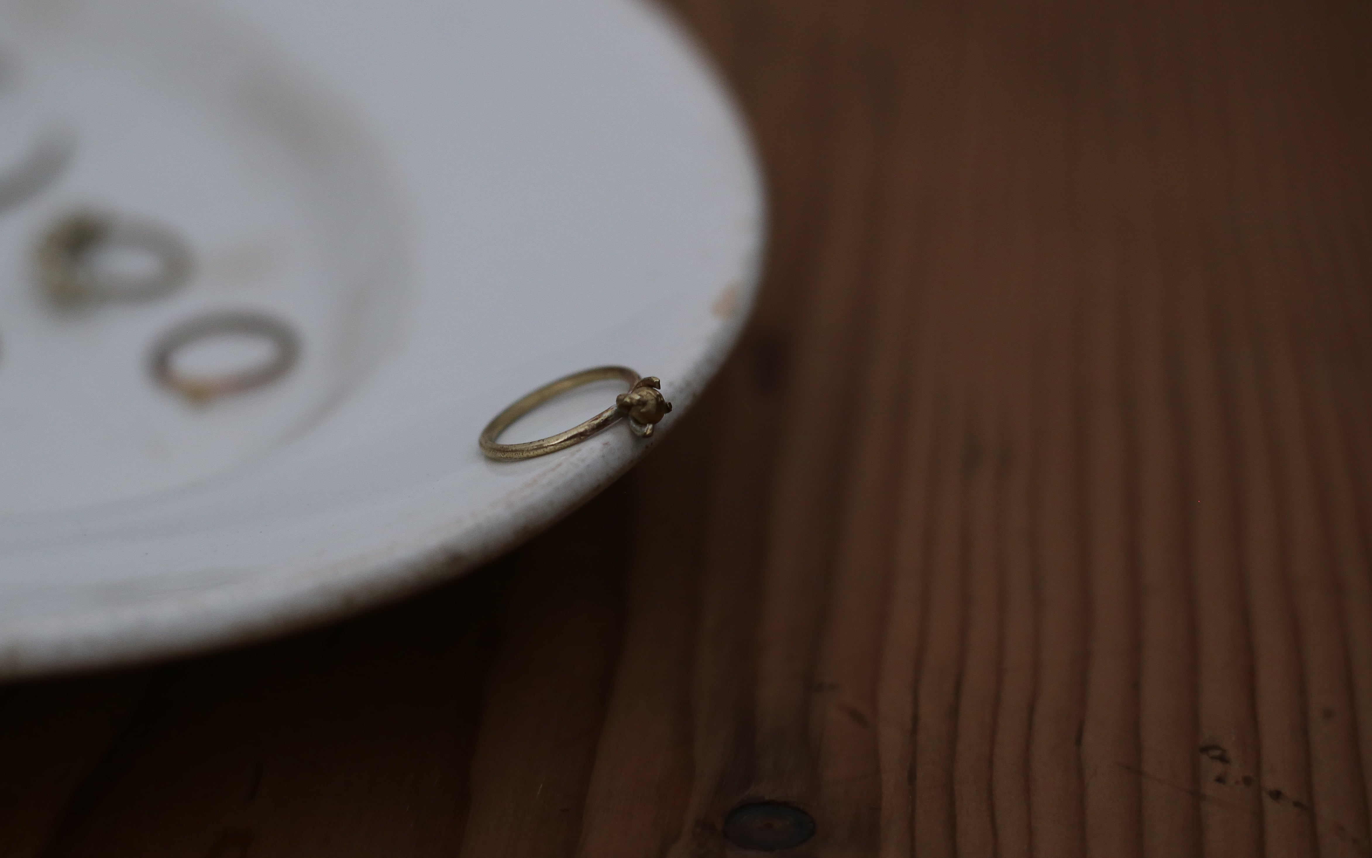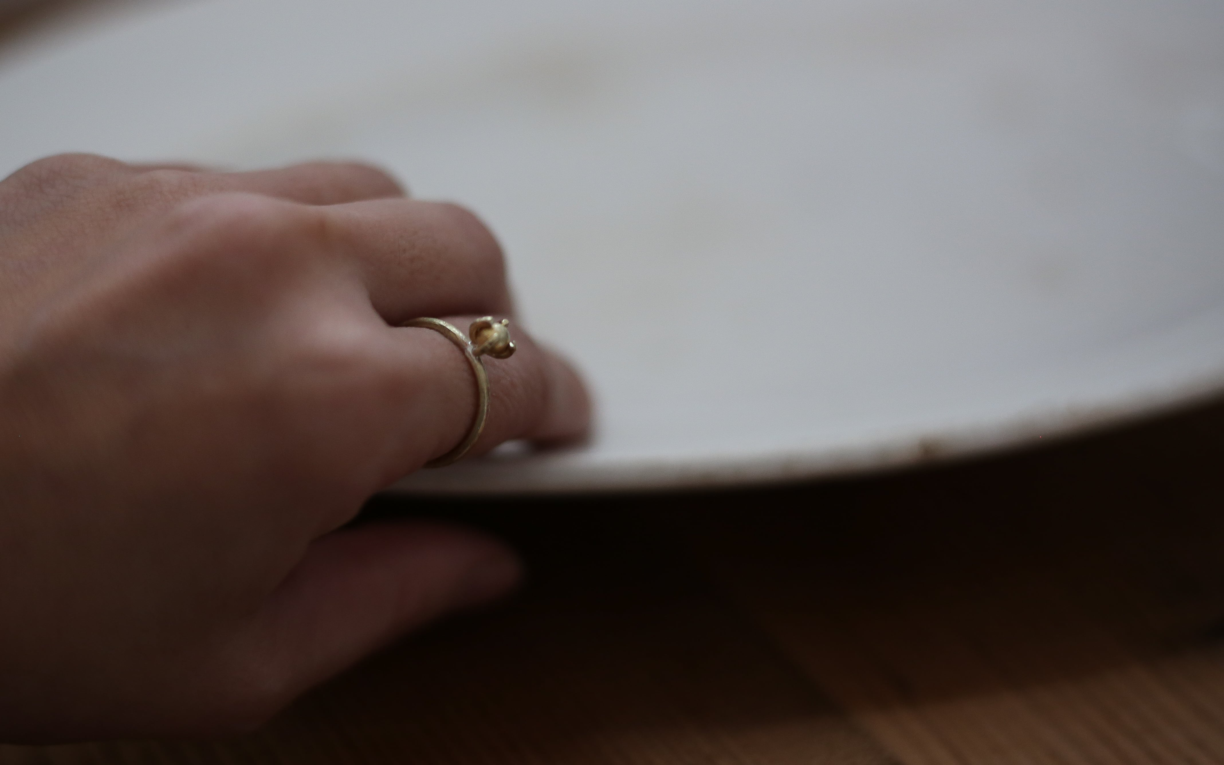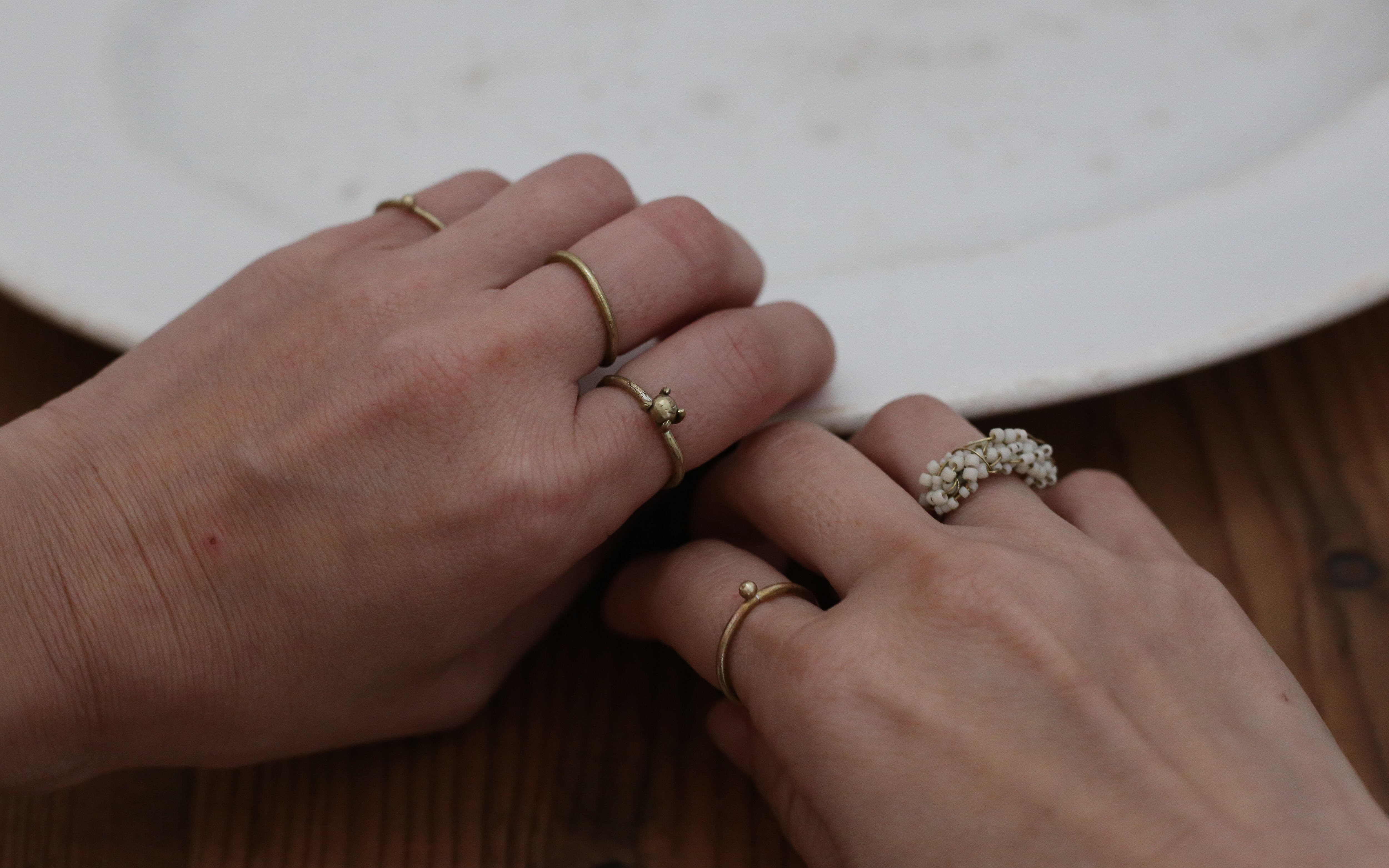 すべて真鍮素材を使った、立て爪のリング。