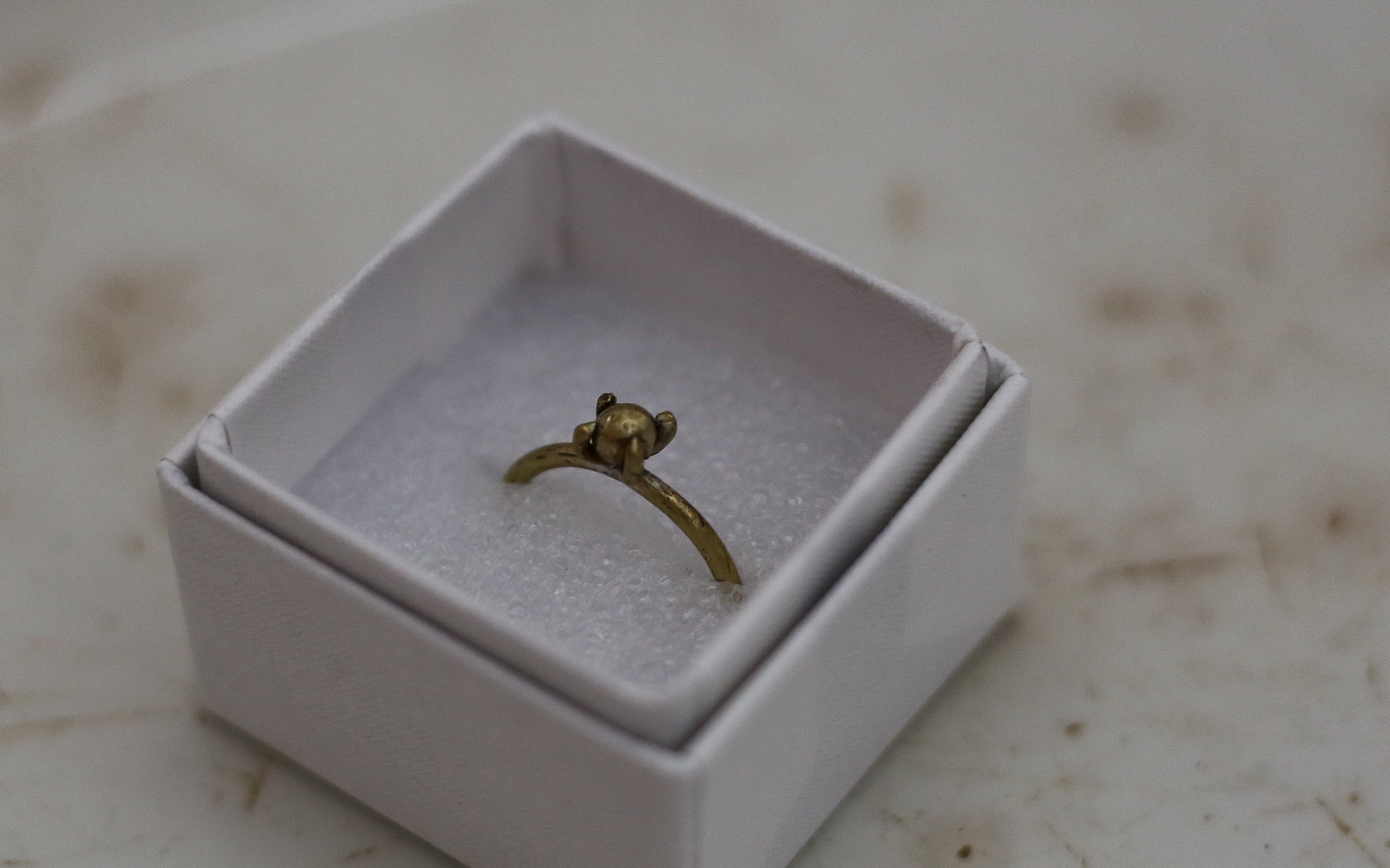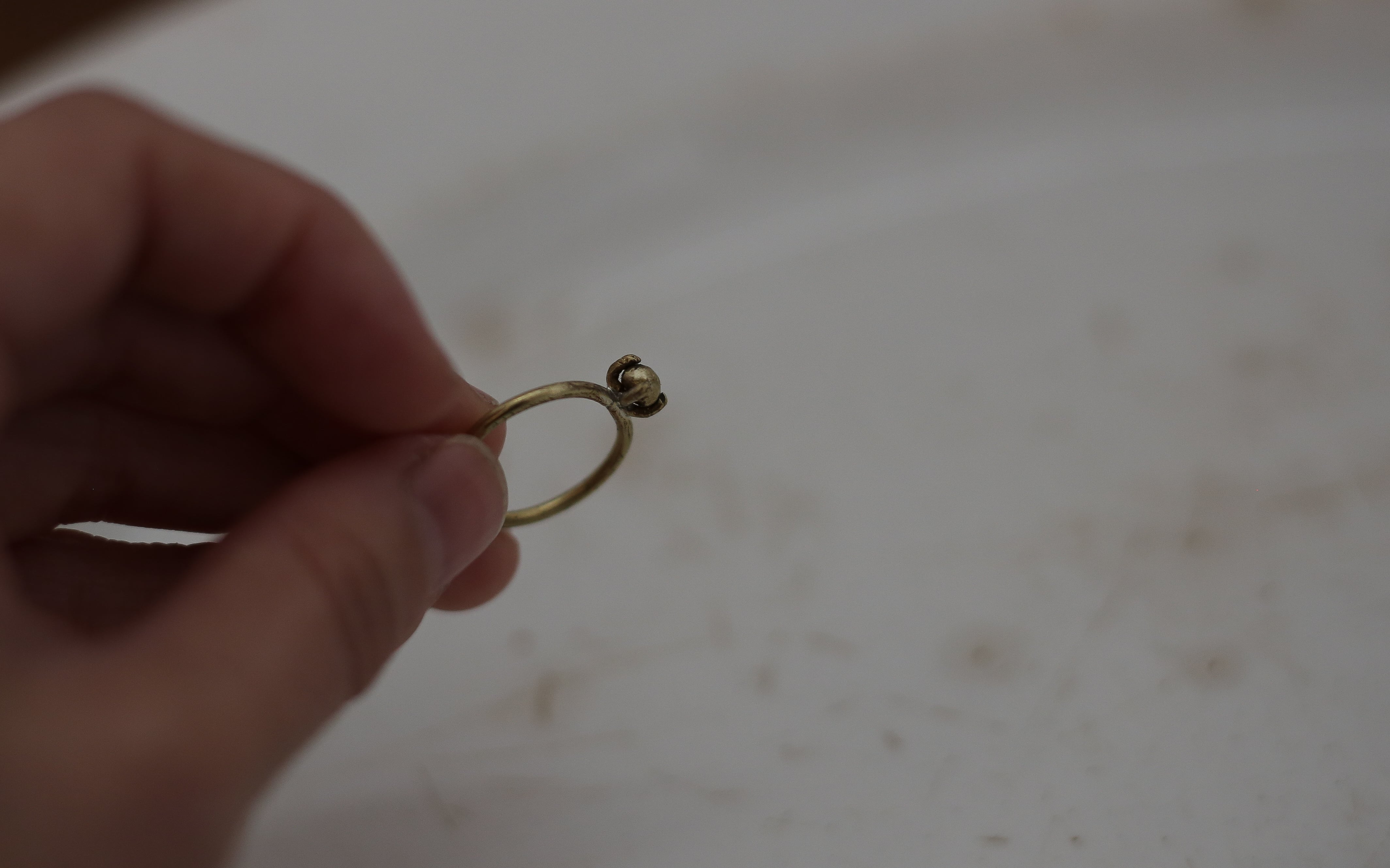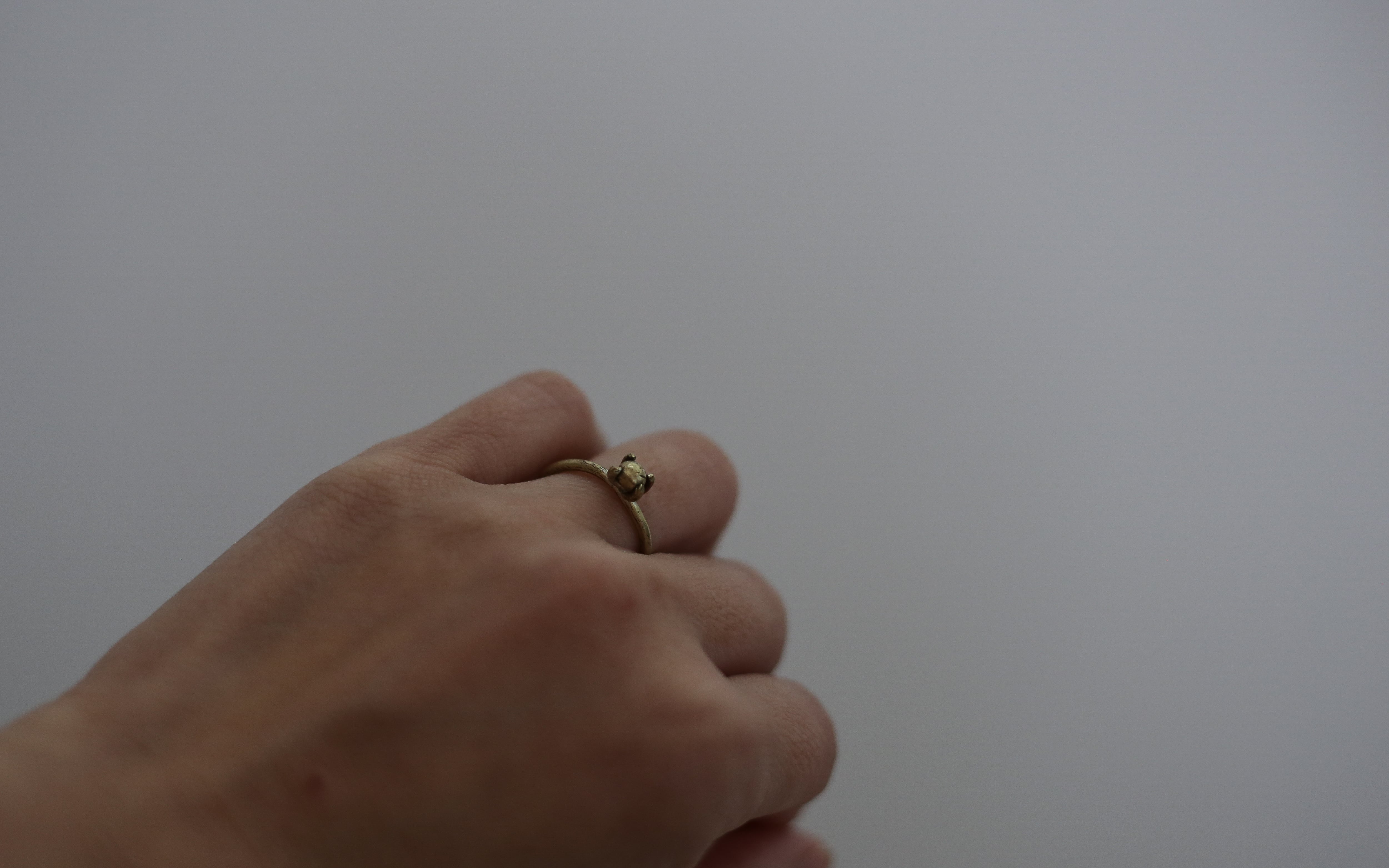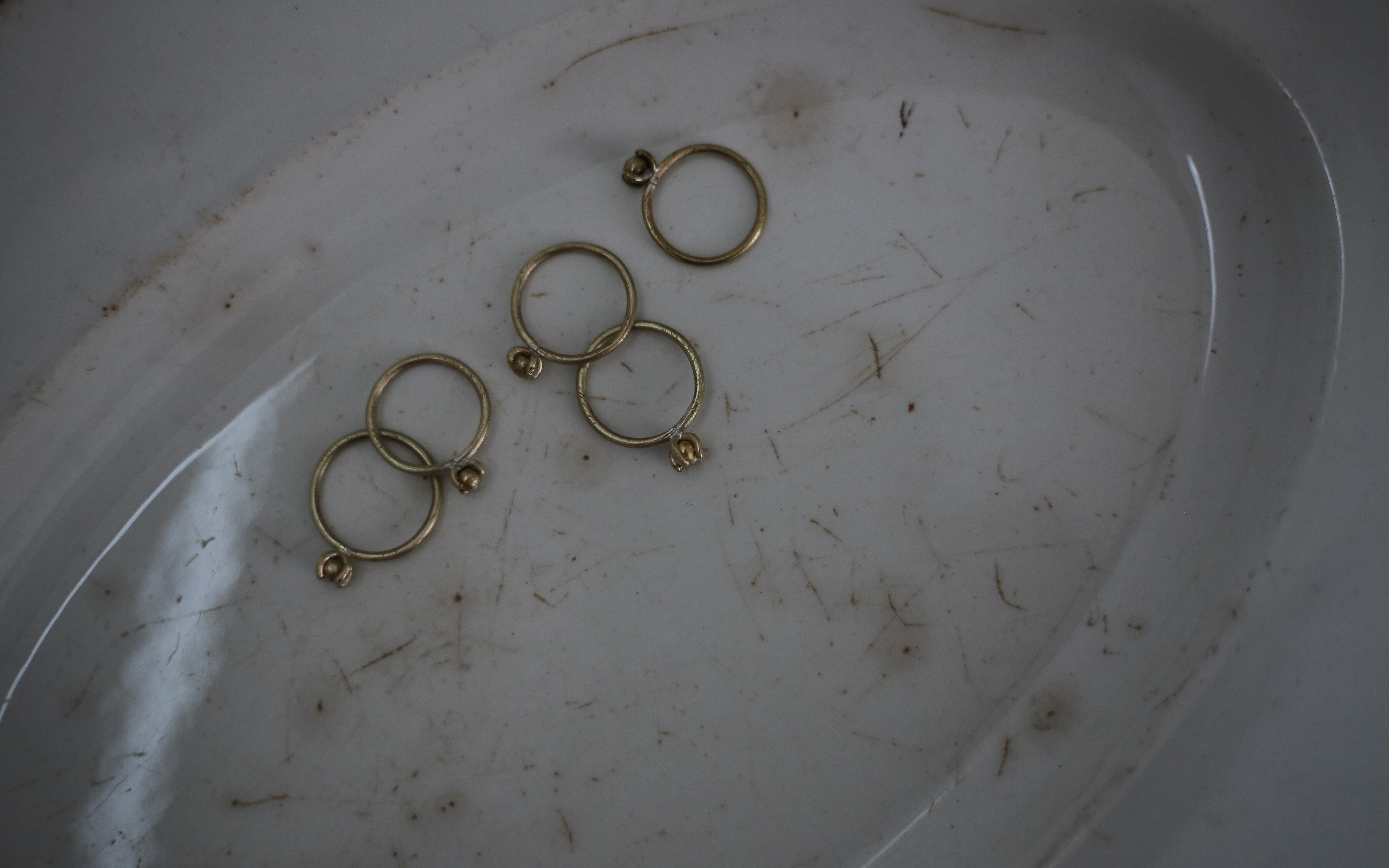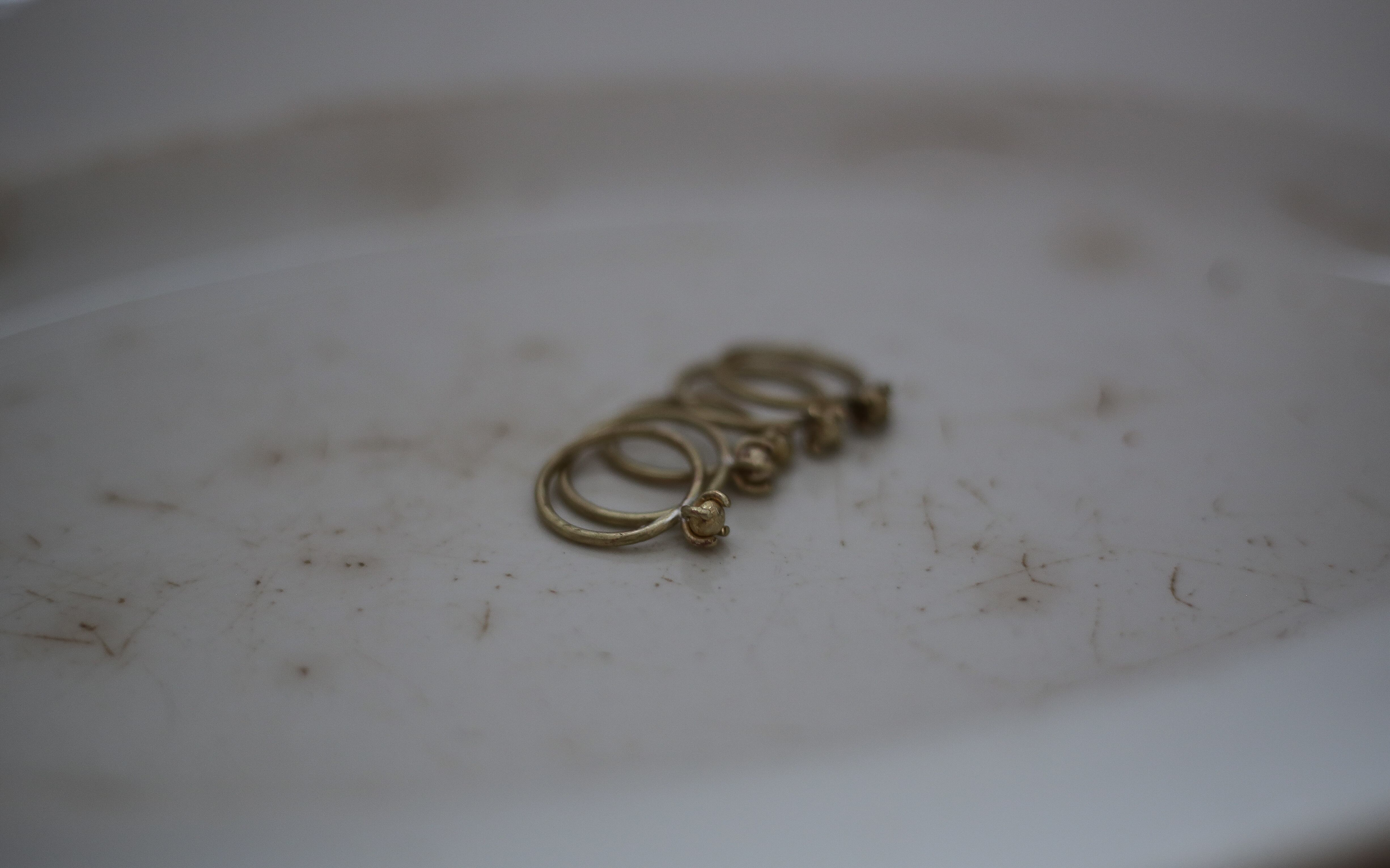 すべて真鍮素材を使った、立て爪のリング。