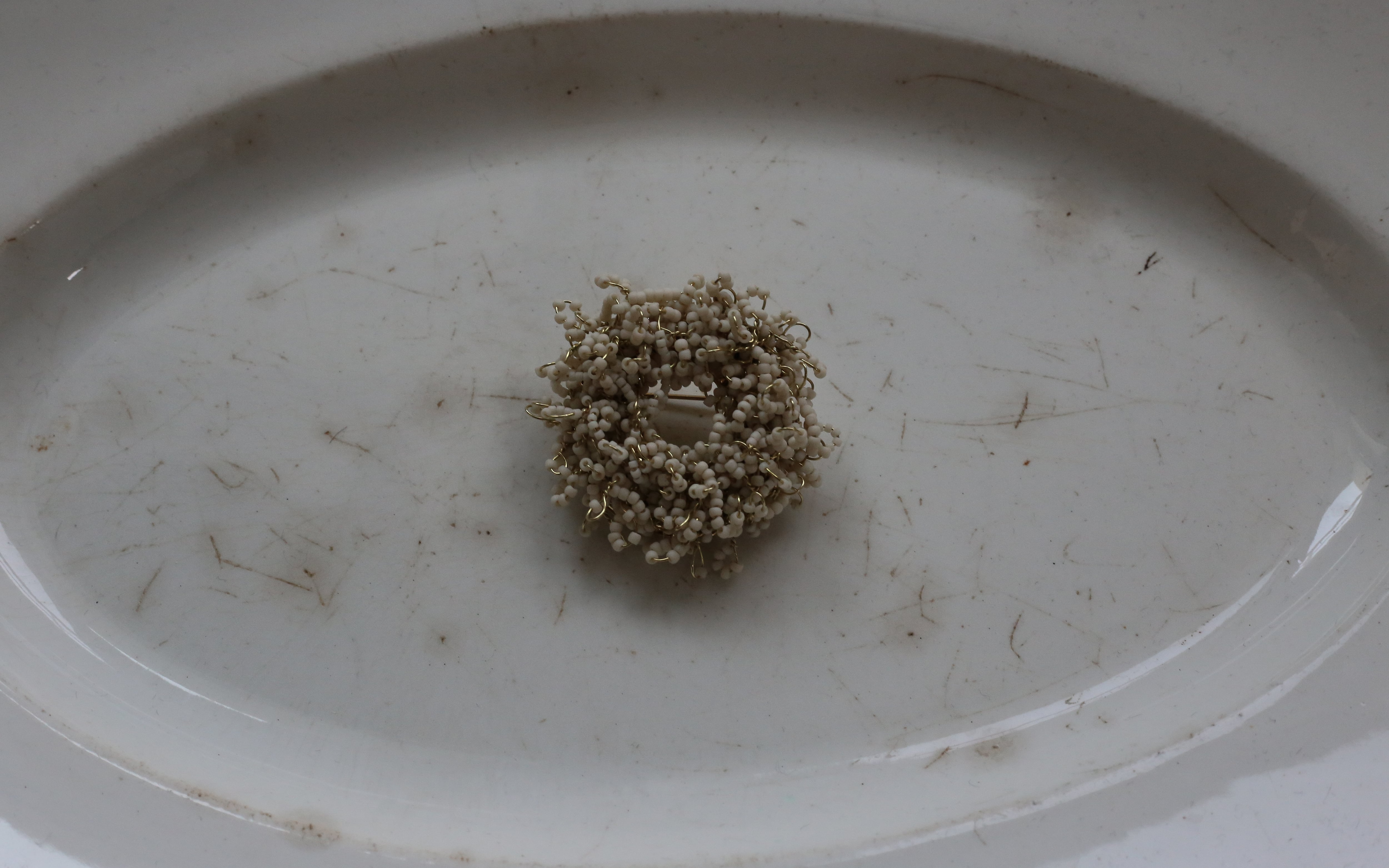 規則的な円ではなく、ビーズが不規則に凸凹しています。