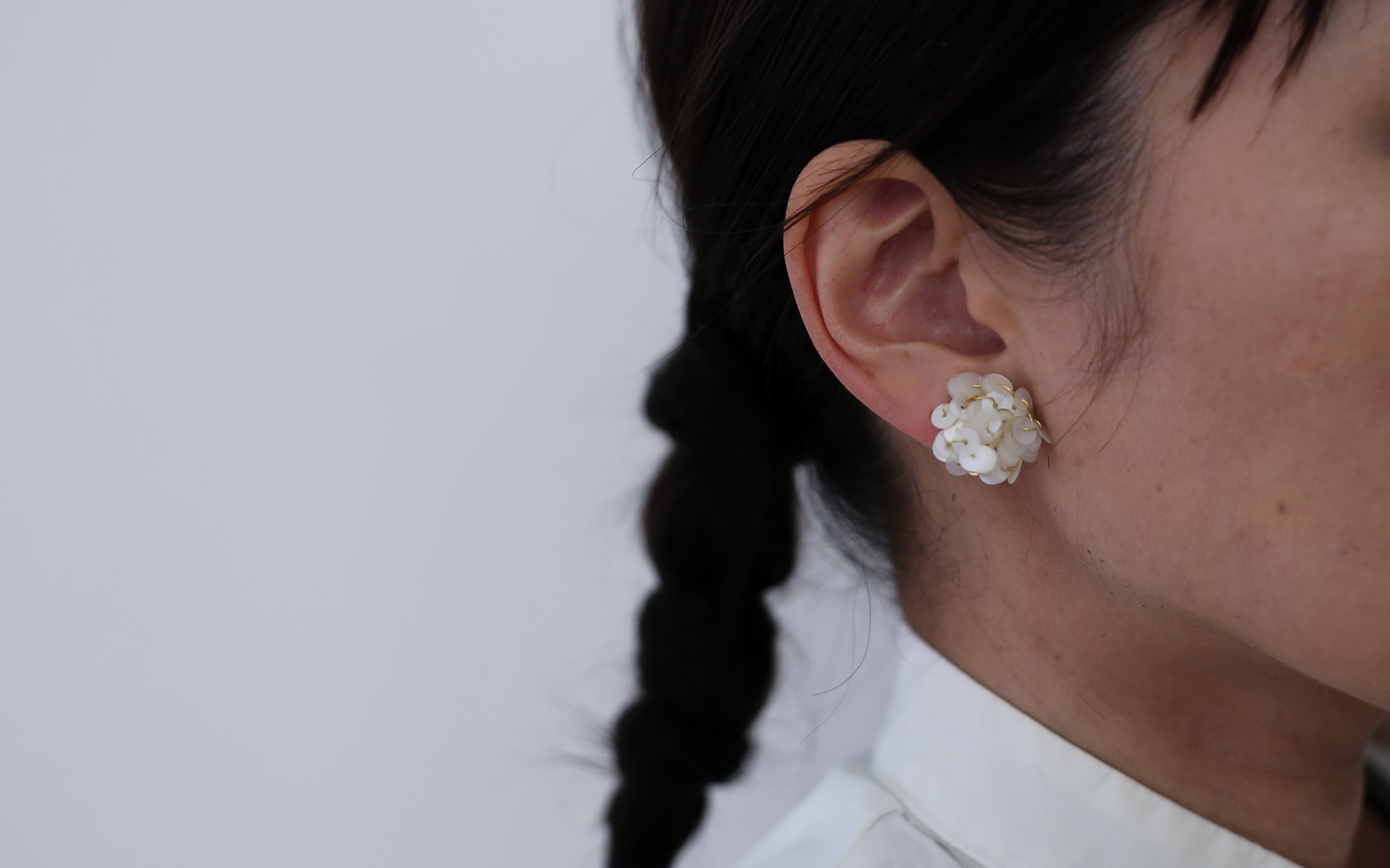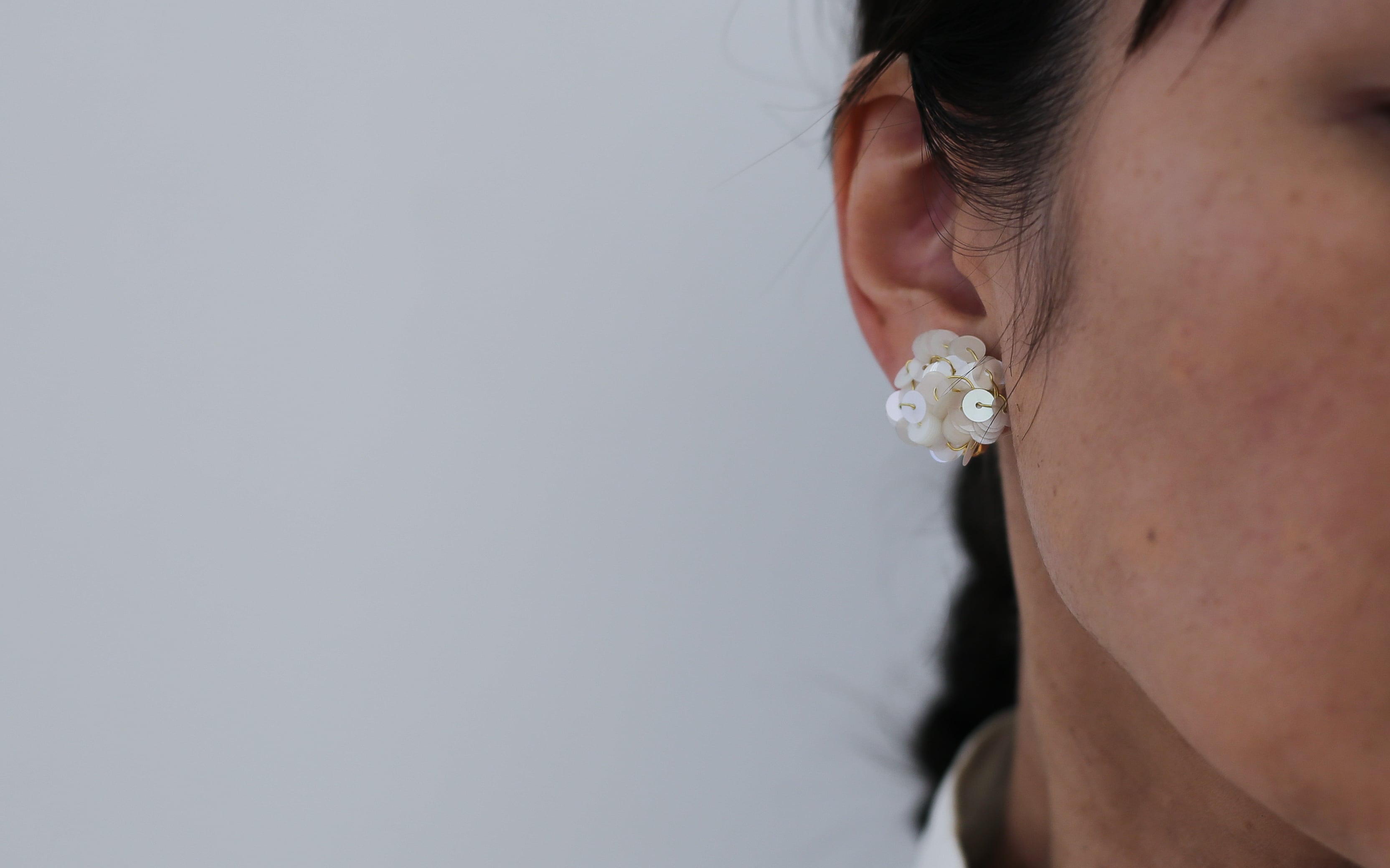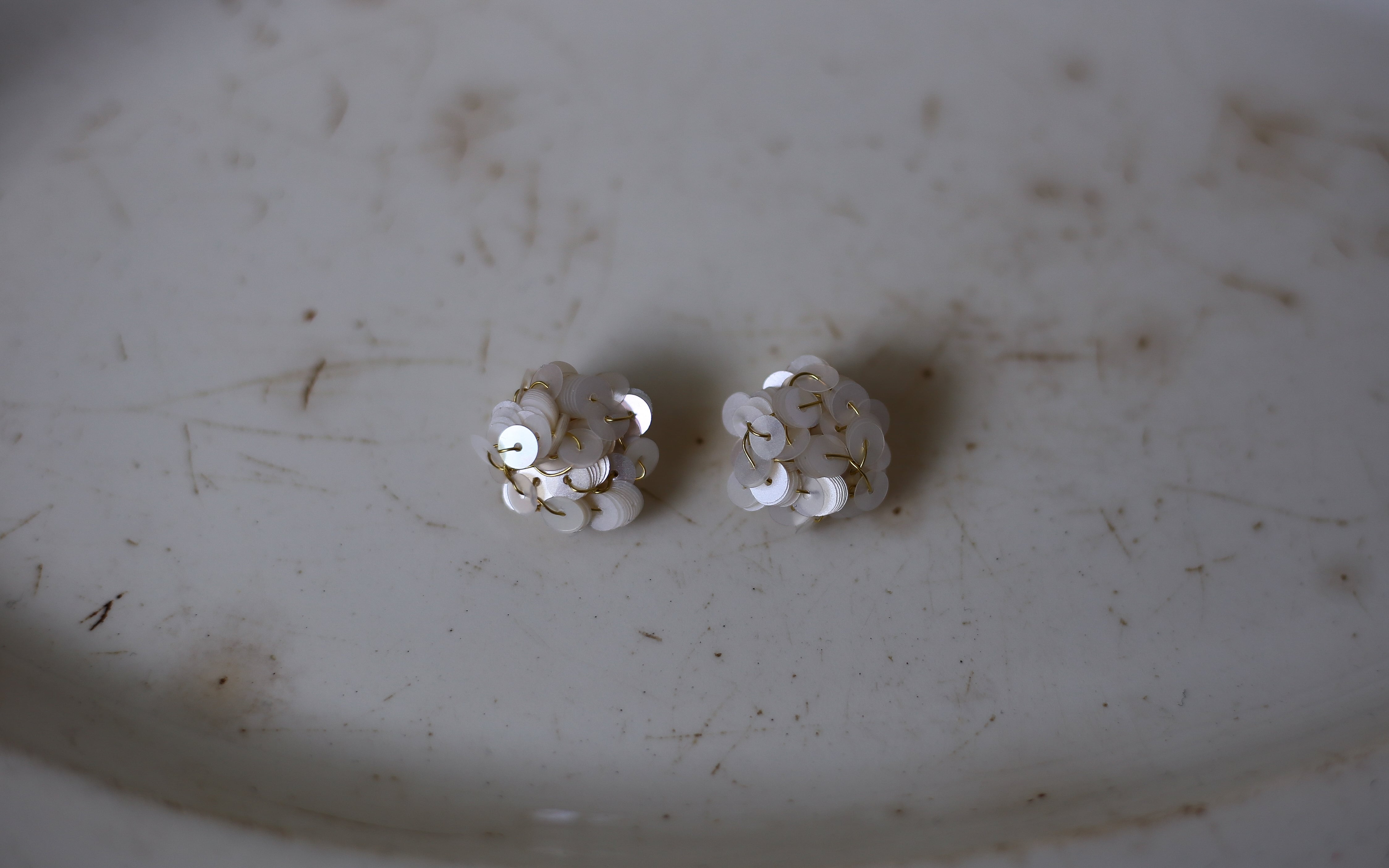 透明のフランス産スパンコールをゴールドの真鍮ワイヤーで仕立てております。